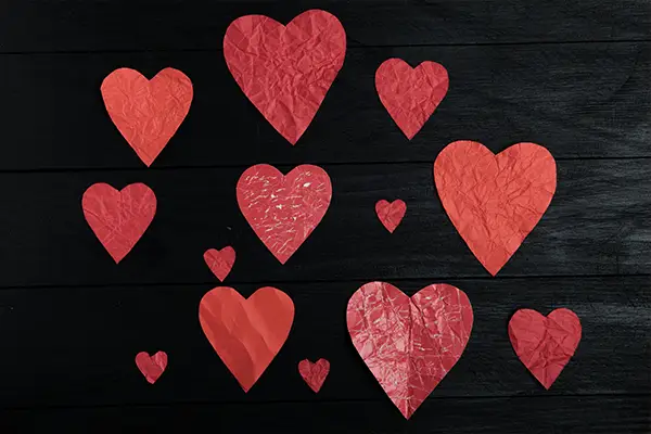 ハート型に切り抜いた赤い紙、