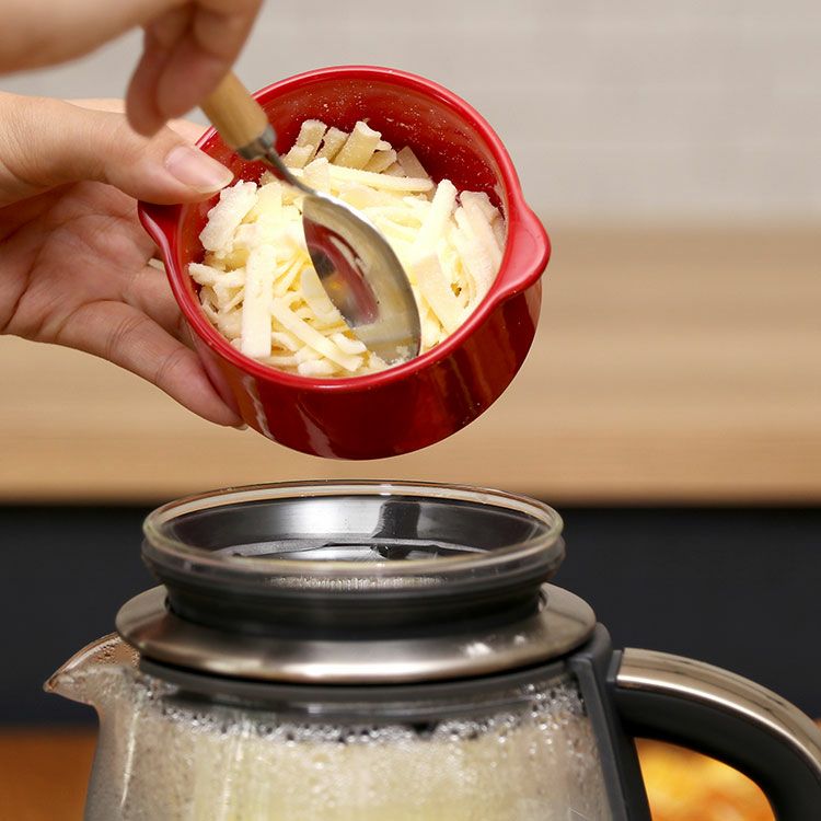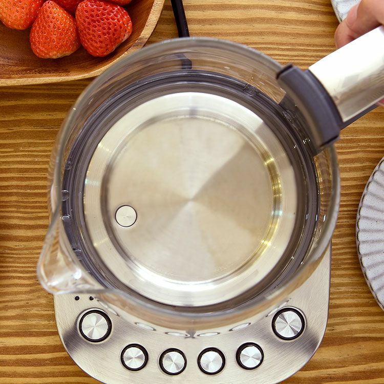スタイリッシュなガラスケトルはおしゃれなだけでなく沸騰する湯の様子や調理中の食材も見ていただけます。また中が見え、汚れなどがすぐわかるのでケトル内をいつも清潔に保つことができます。口が広いのでしっかり洗えるところもポイント。