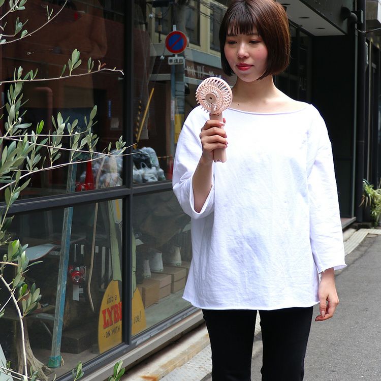 MO-F013 plusmore(プラスモア) 乾電池式ハンディファン スタンド&ネックストラップ付