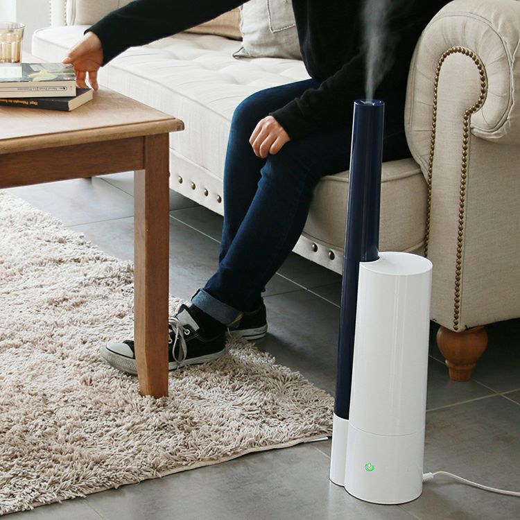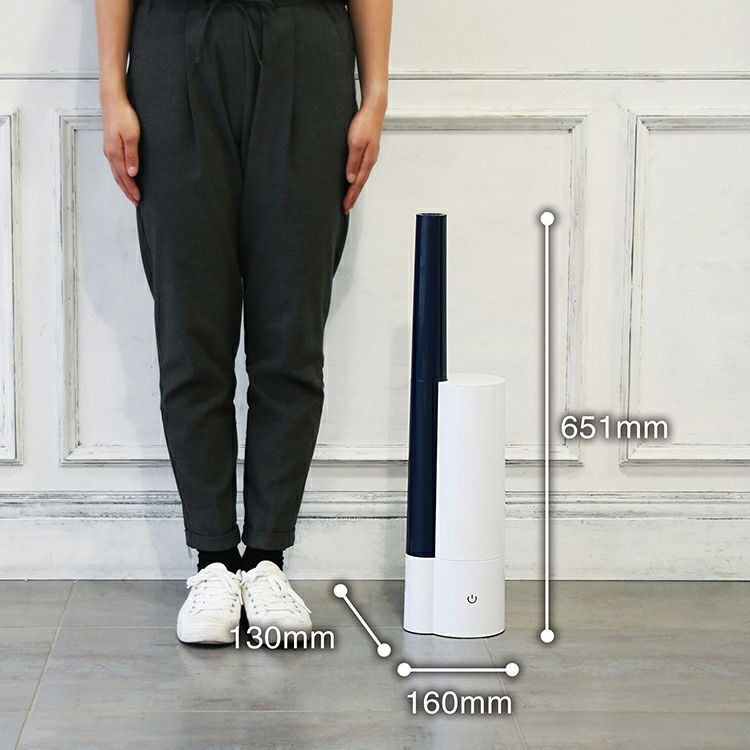 美しい直線のラインとさわやかな二色のコントラストはスマートな生活の象徴。まっすぐ上に伸びた先からは癒しのアロマミストが。インテリアとしての家電の在り方を提案する、新感覚の一台です。