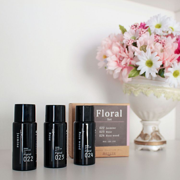 香りはシトラスセット・プラントセット・フローラルセット・フルーティーセット・リフレッシュセットの5種類をご用意。それぞれのセットには特徴ある同じ系統の香りを揃えています。