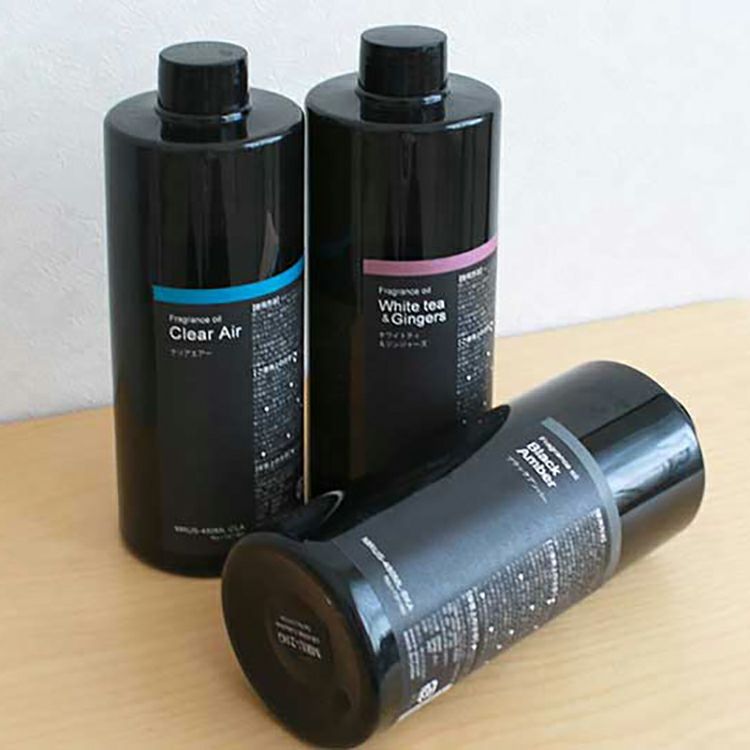 香りはもちろん、ボトルデザインにもこだわりました。ボトルはブラックでシンプルに仕上げ、インテリアの邪魔にならないデザインです。