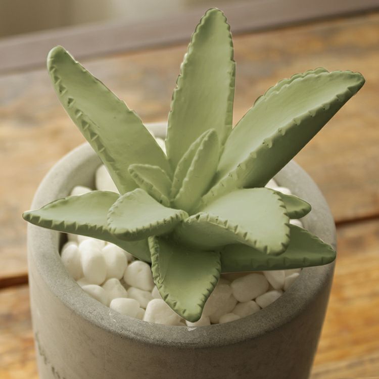 無機質なセメントのカップに入った、まるで本物のようなかわいい2種類のサボテンからは、それぞれ華やかないい香りが。白い小石を敷き詰めてあるところも本物らしく見えるポイントです。