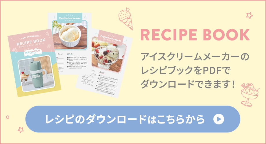 カロリーが気になる方、素材にこだわりたい方に。材料を入れてボタンを押すだけで、自分好みの本格アイスクリームが完成!レシピブック付きのため、様々なフレーバーアイスを楽しめます。猛暑対策として深部体温を直接冷やせると話題のアイススラリーも、自動で簡単に完成!猛暑日が毎年増加している昨今、アイスクリームとアイススラリーで美味しく暑さ対策するのにもおすすめです。給電式のため、作りたい時にすぐ使える点も◎。