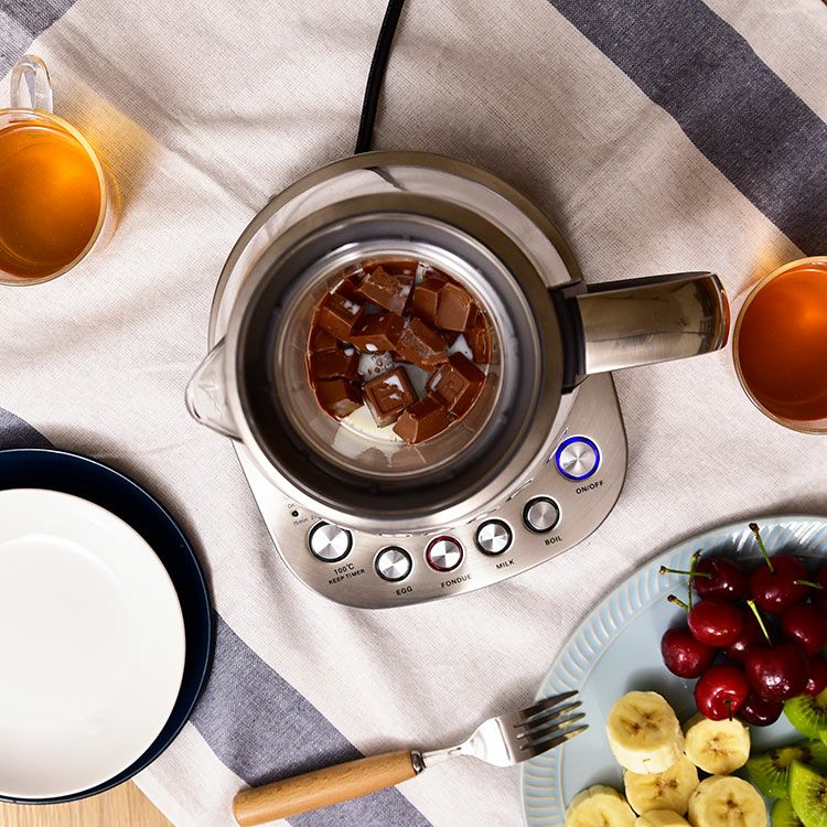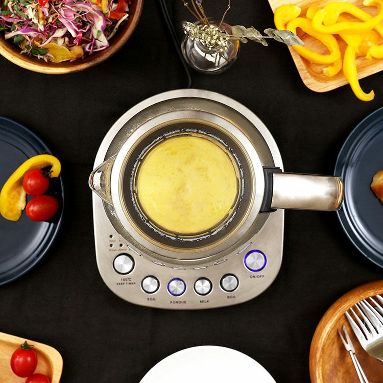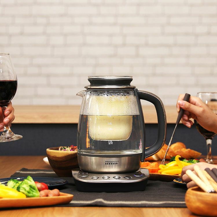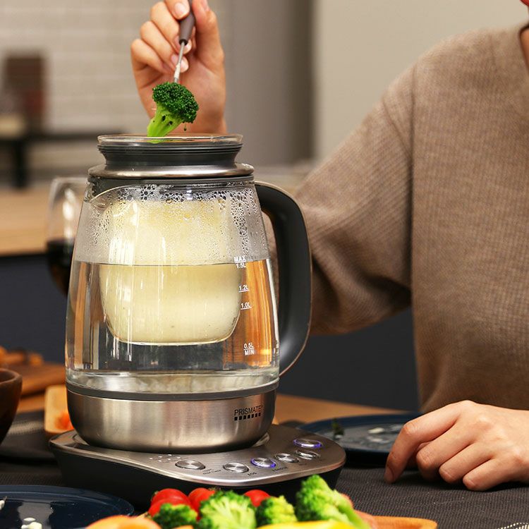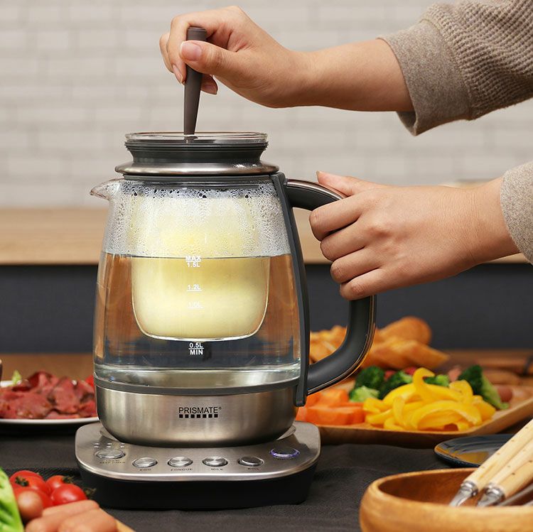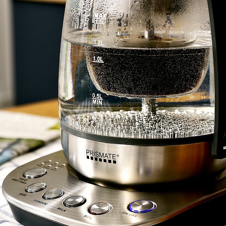 スタイリッシュなガラスケトルはおしゃれなだけでなく沸騰する湯の様子や調理中の食材も見ていただけます。また中が見え、汚れなどがすぐわかるのでケトル内をいつも清潔に保つことができます。口が広いのでしっかり洗えるところもポイント。