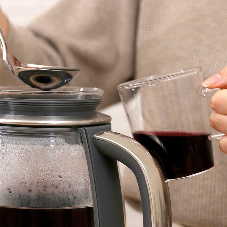 サイフォン風コーヒーが楽しめるセット付ですので、香り豊かな本格コーヒーを簡単にお楽しみいただけます。また紅茶もお作りいただけ、タイマー設定によりお好みの濃さに調節していただけます。