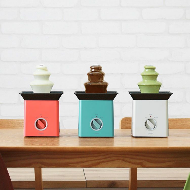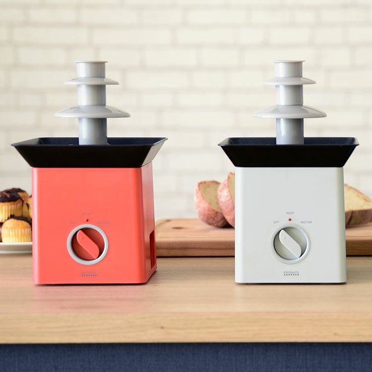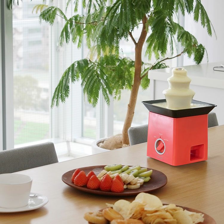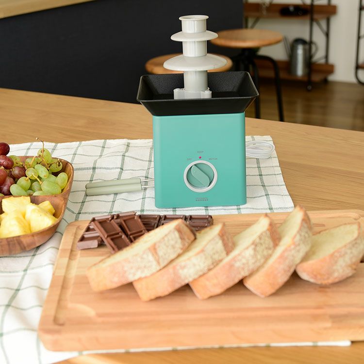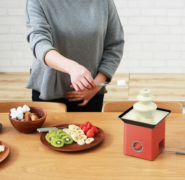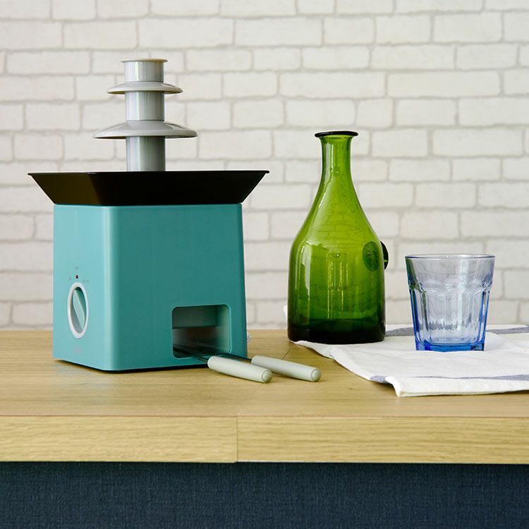 「らしくなさ」と「あると嬉しい」を形にしたフォンデュブロック タワー。本体にあいた穴は、ちょっと置きたいときにあると嬉しいフォークレスト。タワーから流れるチョコレートにお好みの具材をくぐらせれば、お家で本格的なスイーツタイムをお楽しみいただけます。