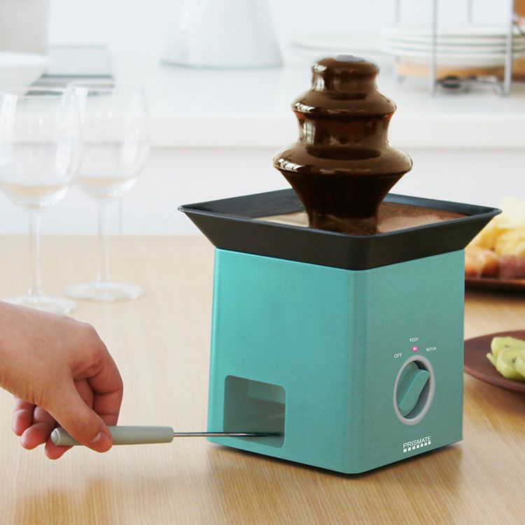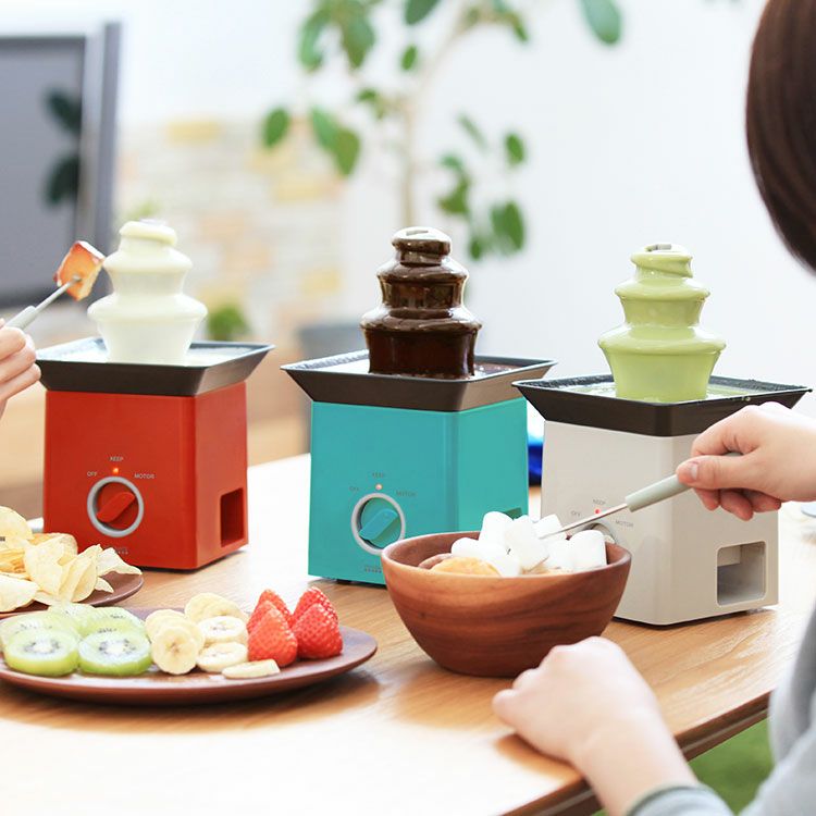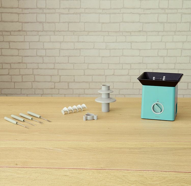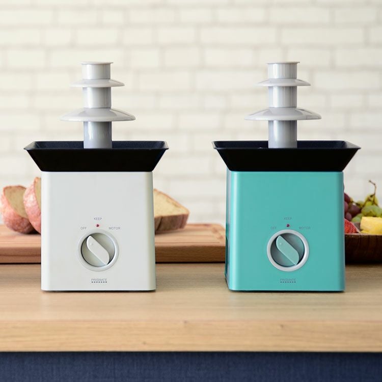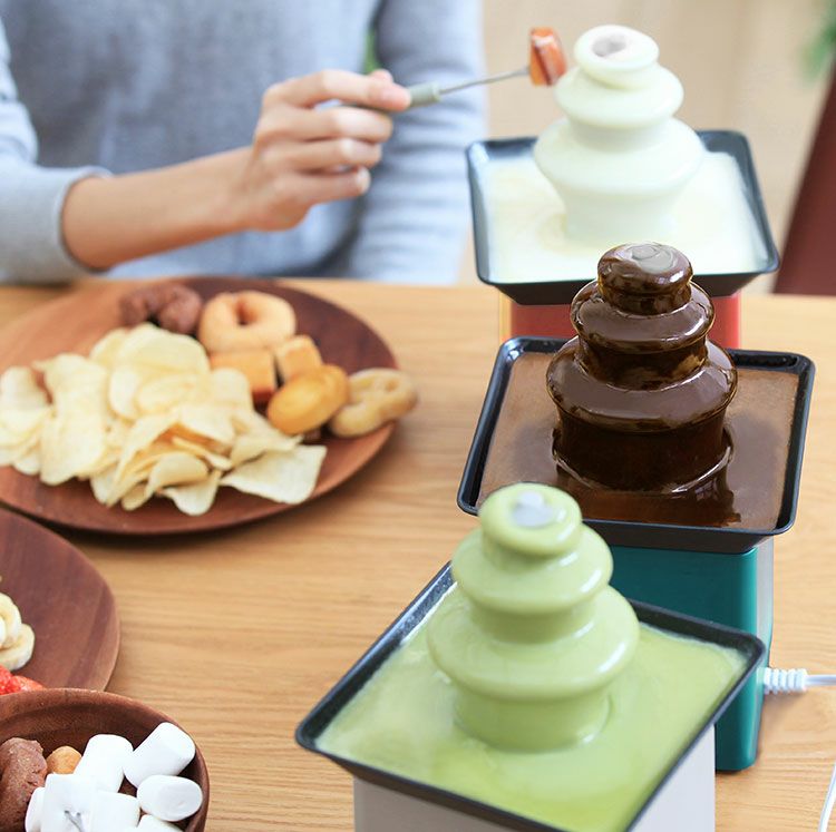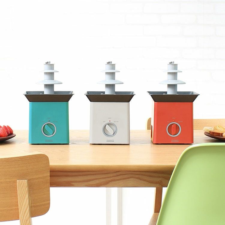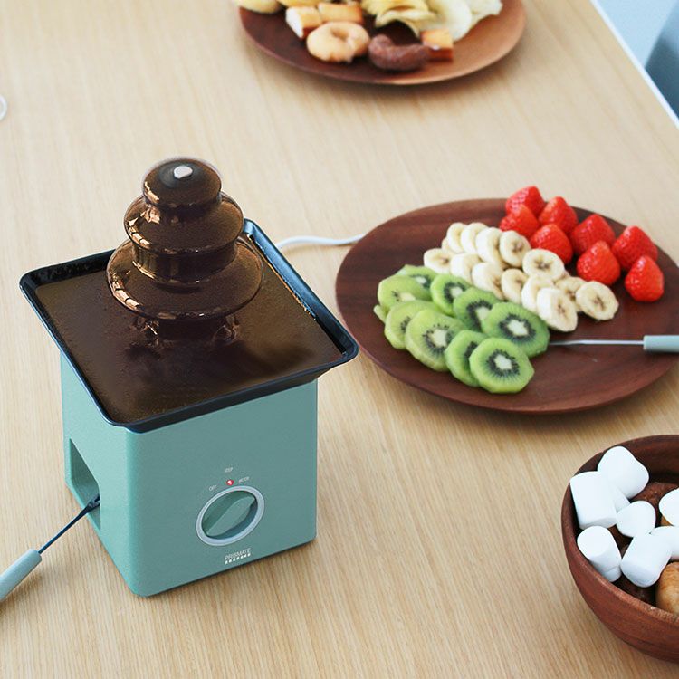 「らしくなさ」と「あると嬉しい」を形にしたフォンデュブロック タワー。本体にあいた穴は、ちょっと置きたいときにあると嬉しいフォークレスト。タワーから流れるチョコレートにお好みの具材をくぐらせれば、お家で本格的なスイーツタイムをお楽しみいただけます。