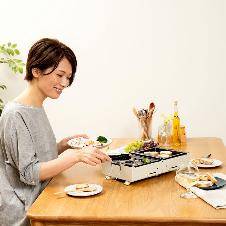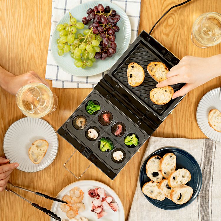 深めのプレートだから具だくさんでボリュームのあるホットサンドが作れます。美味しいだけではなく見た目も華やか。両面それぞれで温度調節ができるのでムラなくキレイに焼きあがります。180°開くとホットプレートとしても使えるSNS映え間違いなしの1台です。付属のプレートやふたを活用してあなただけのアイデアレシピをお楽しみください。