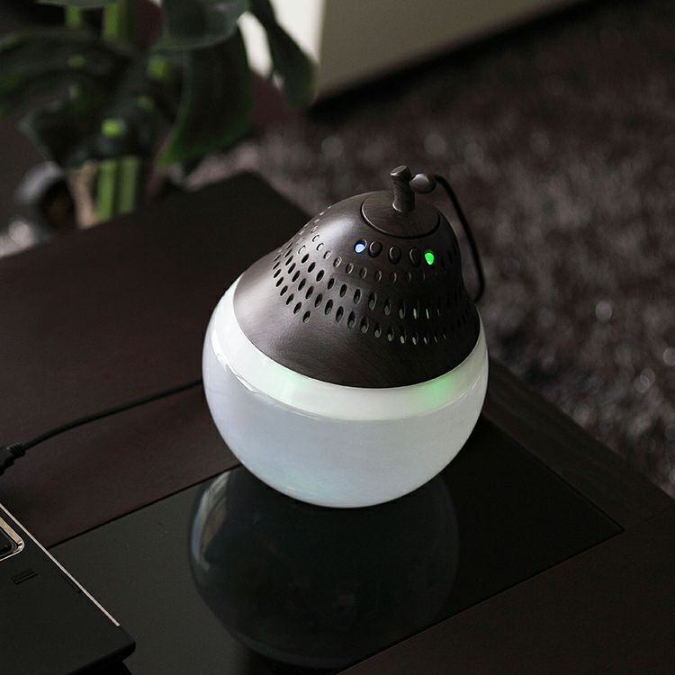 クリスタルガラスが美しい空気洗浄機。丸いフォルムの中を回転する水の輝きがお部屋を彩ります。