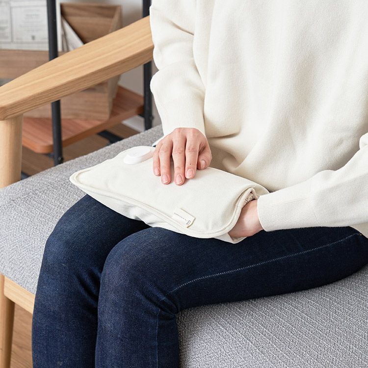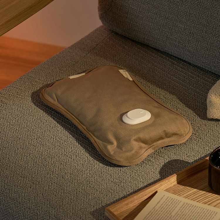 カバー着脱不要で蓄熱できる手軽さと、冷えがちな手を直接温められるポケットが便利な湯たんぽ。生地はニュアンスカラーで触り心地が良いコーデュロイ素材を採用し、インテリアにも馴染みます。従来の湯たんぽのようにお湯を沸かして入れ替える必要がなく、本体を電気で発熱・蓄熱させるため、繰り返し使えてエコなのも嬉しいポイント。約15分の蓄熱で約60℃の温かさが長時間持続し、局所暖房としても活躍します。