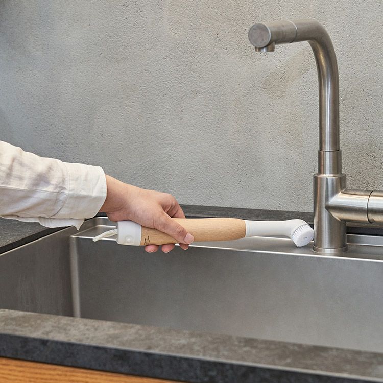 ブラシ2種とパッド3種類付属。「かき出す・磨く」の両方で、どこでもお掃除できます。キッチンや洗面所、浴室、トイレなど、手での掃除が難しかった場所もまとめてすっきりキレイに。さらに別売の360°ブラシを使えば、L字型ブラシでは届かないステンレスボトルの内底面やシューズの内側の掃除も可能。その他付属ブラシも別売販売があるので、必要な種類のブラシのみ購入でき、無駄がありません。水回りのお掃除が楽しくなるコードレス電動ブラシです。