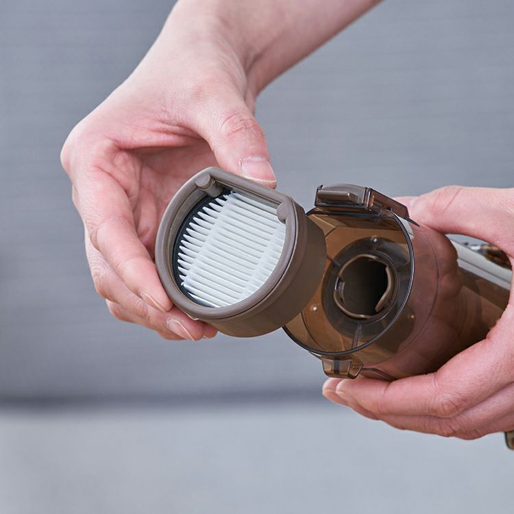 自立・自走・軽量・コードレスで掃除の負担を大幅に減らしたスティッククリーナー。本体にブラシが付属しているため、ハンディとしても活用でき、軽量のため高い場所への掃除も楽々。隙間掃除にも便利です。ヘッドにモーターを搭載した自走式で、力を入れなくても掃除が完了。ヘッド部分は垂直方向に切り替えができ、スタンド無しで自立し省スペースにも収納OK。溜まったごみは手を触れずに捨てられるため、衛生的で手軽な点も◎。