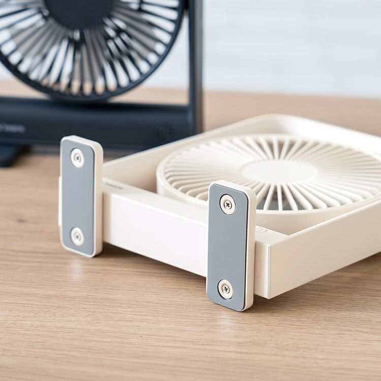 スリムで軽量、そしてスタイリッシュなデザインが魅力のデスクファン。底面についたマグネットは、キッチンの壁面や冷蔵庫など、あらゆる場所に吸着が可能なため、これ一台あれば様々な場所に持ち運んで活用できます。薄さ約3.5cmのスリムでコンパクト設計のため、オフシーズン時の収納にも場所を取らず便利です。