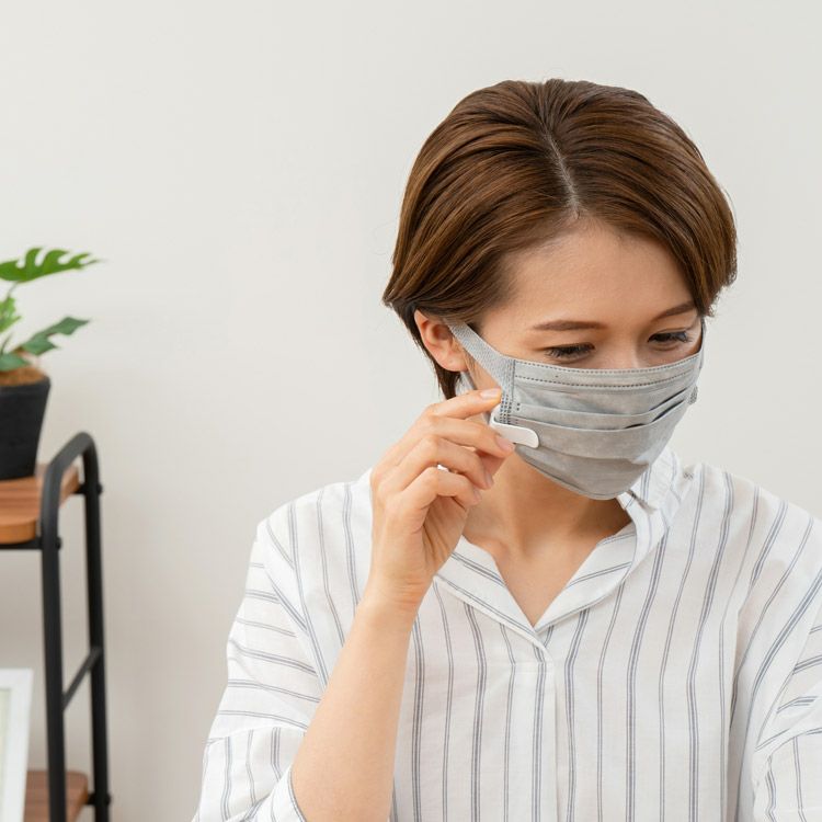"マスクを挟み込む取付け方法のため、様々な種類のマスクに対応可能。※マスクの種類によっては取り付けられないものもありますまた頬にフィットする形で取りつけているのが目立ちにくいため、周りを気にせずご使用いただけます。"