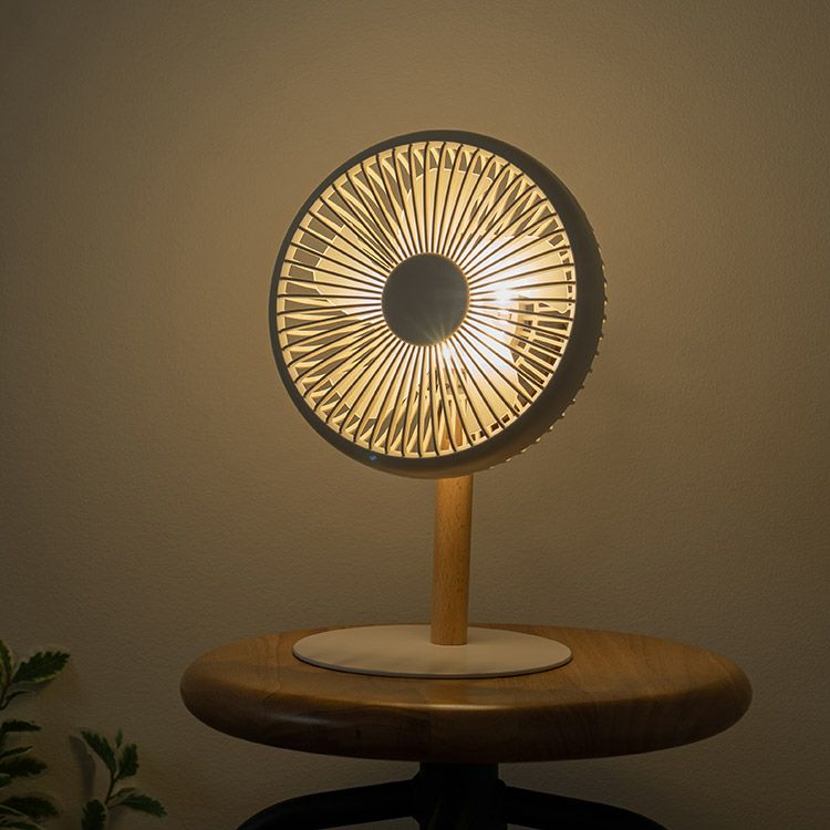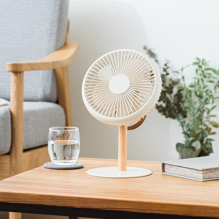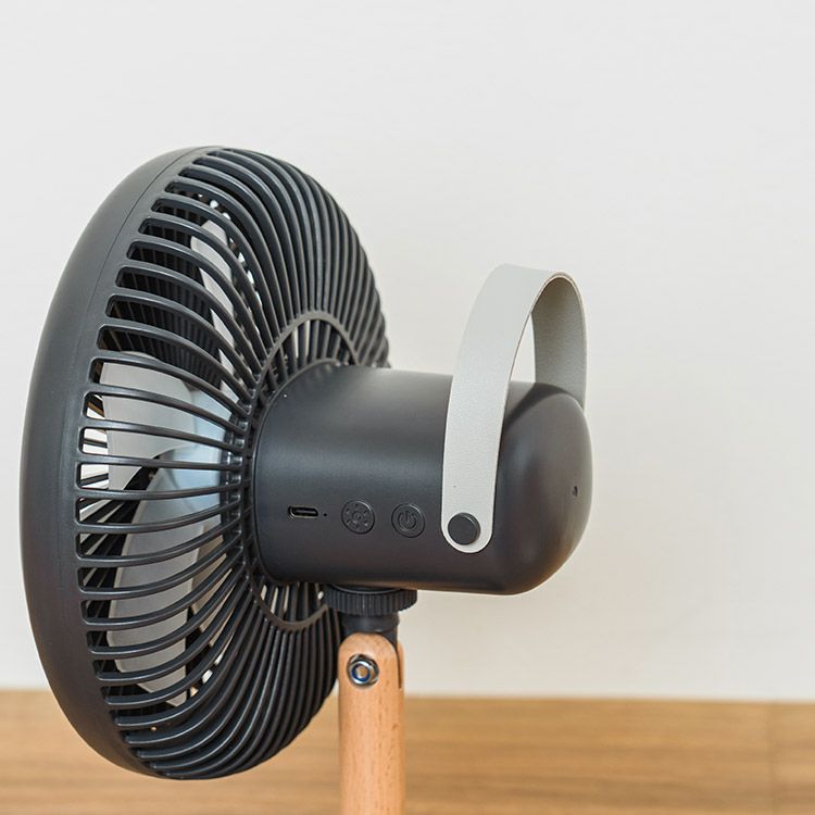 支柱部分にリアルウッドをあしらい、ナチュラルテイストでもモダンインテリアにも馴染む、コンパクトなリビングファン。デスク、吊り下げの2WAY仕様で、設置場所の環境に合わせて使用が可能です。コードレス設計で持ち運びやすいよう背面にはハンドルを配置。LED付きのため、アウトドアでの利用にも活躍します。