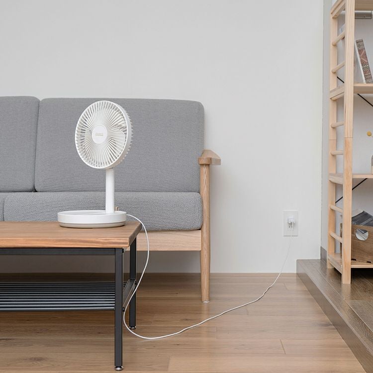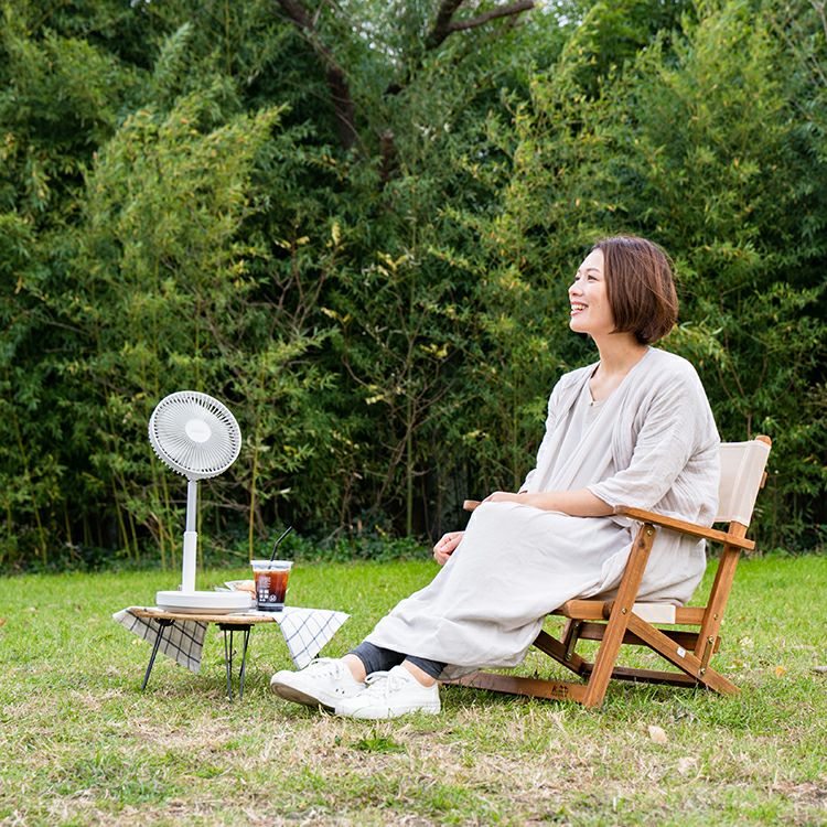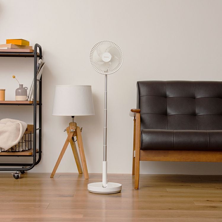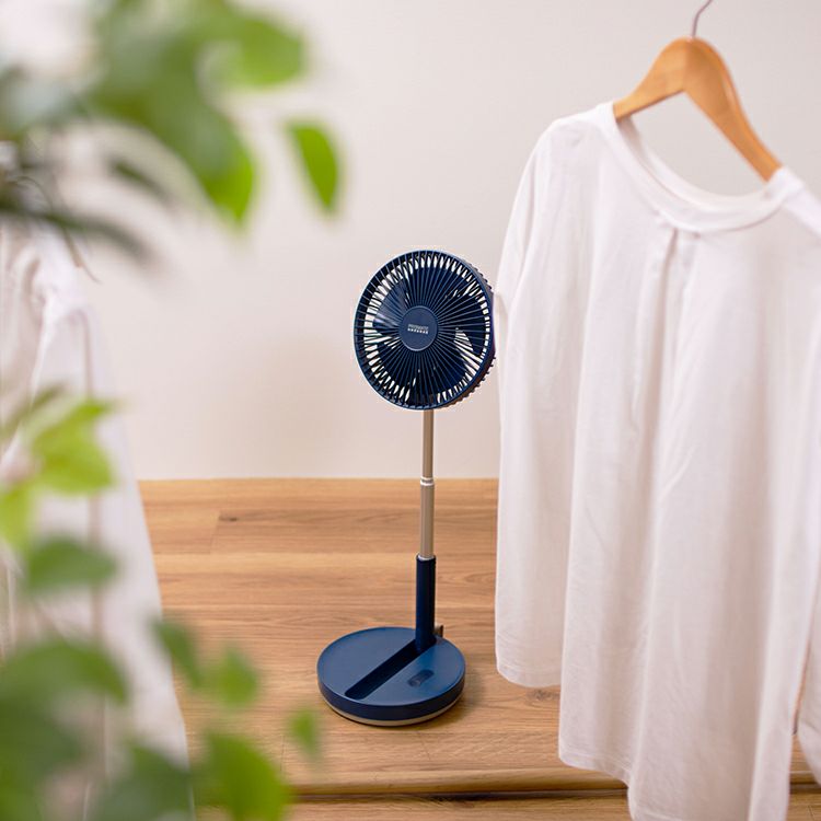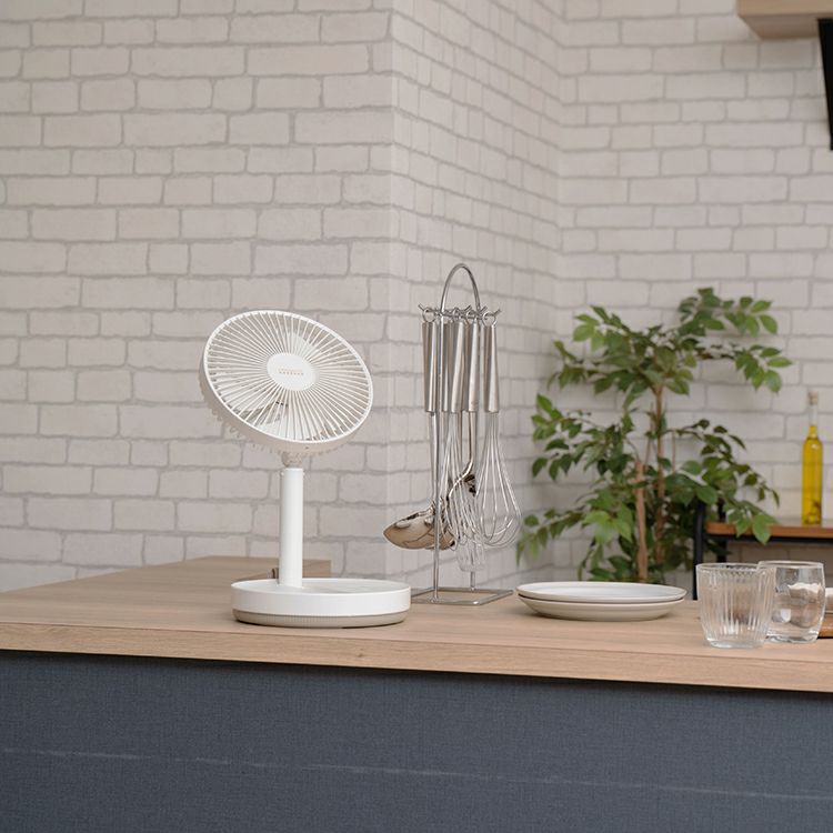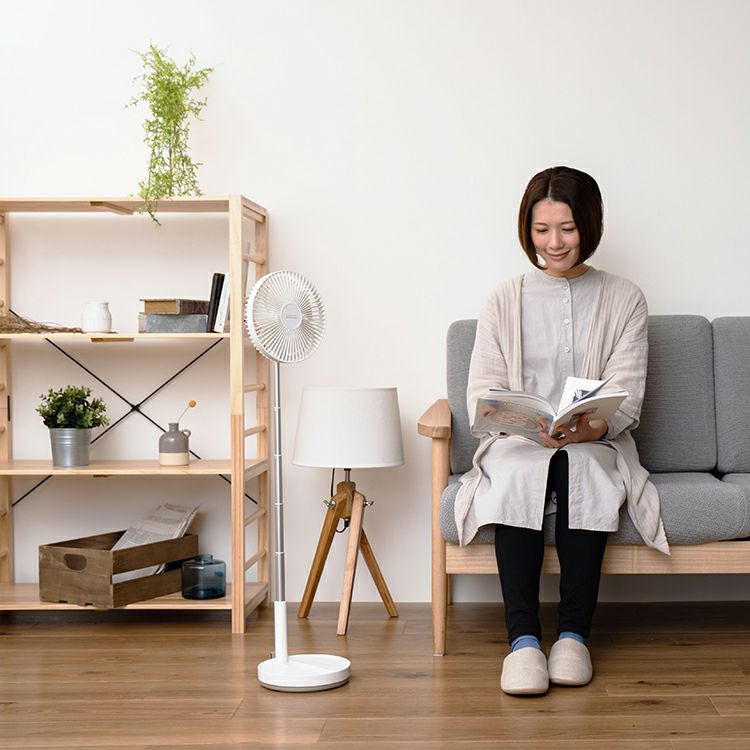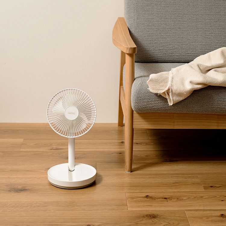 リビングファンの機能をそのままに、コードレスにしたことで使い方や使用場所の幅がグッと広くなった全く新しいリビングファンです。折りたたみ式だからさらに持ち運びや収納が便利に。十分な風量と、リズム・自動首振り運転機能、上向き約90°の角度調節が可能な賢く便利な優れもの。風から快適な毎日を提案する1台です。