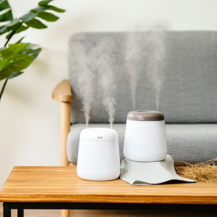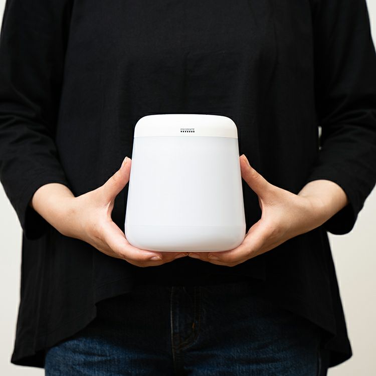 ほんのりと浮かび上がる光の陰影から2本のミストが立ち上り、あなたの周りを潤いで包みます。水がなくなっても簡単に給水ができるように、上部を押し込むだけ楽々なノック式給水方法を採用。誤って倒してしまっても 安心できるよう、パッキンでしっかりと水漏れを防止し、「倒れても水がこぼれにくい」を実現した、暮らしに溶け込むコードレス加湿器です。