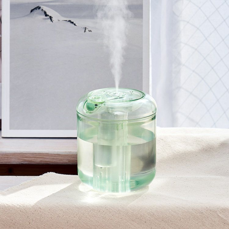 クリアなボディと7色のLEDライトが目を惹くコンパクト加湿器