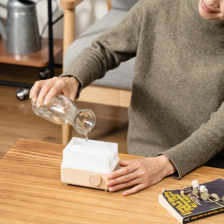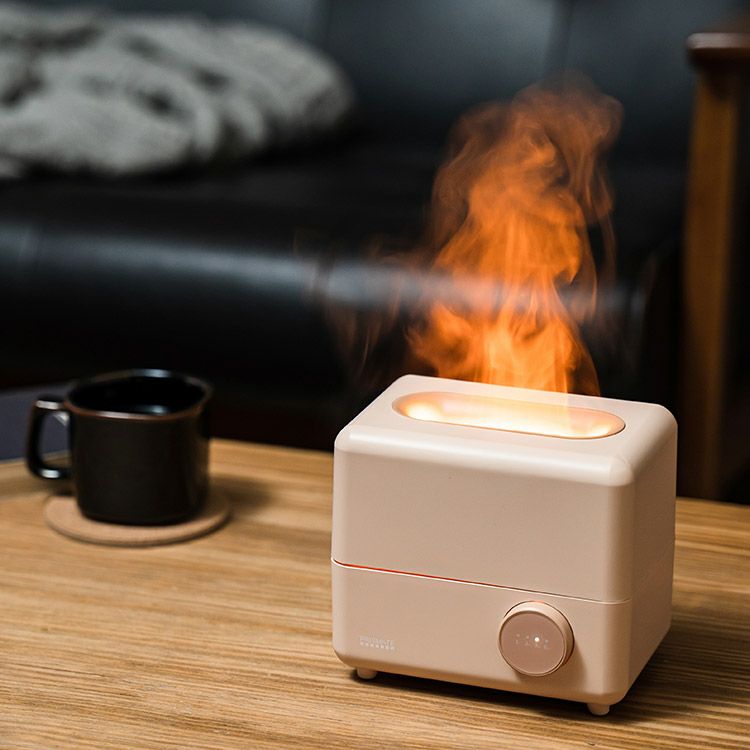 まるで焚火の炎のように美しく揺らめくミストと、あなたのお好きなアロマをプラスして、「ライト+香り+加湿」の3拍子がそろった極上のリラックス空間を演出します。