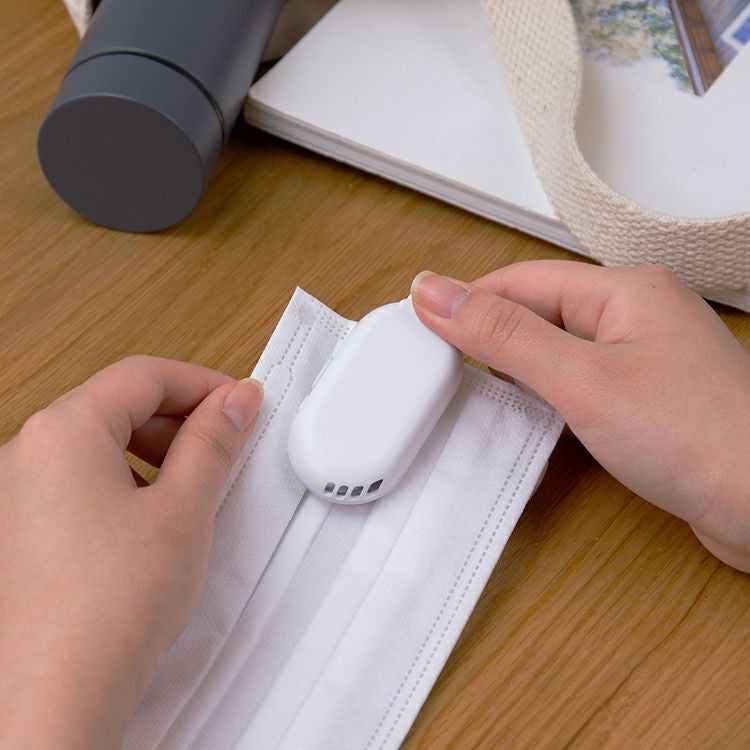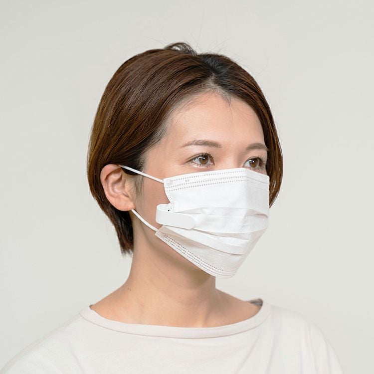 マスクを挟み込む取付け方法だから、さまざまなマスクに対応できます。快適なマスクを体感ください。※マスクの種類によっては取り付けられないものもあります