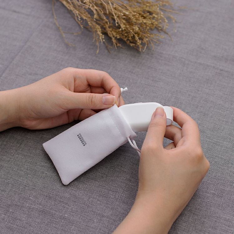 シンプルなデザインの小さな専用ポーチが付属。持ち歩く時にも安心です。