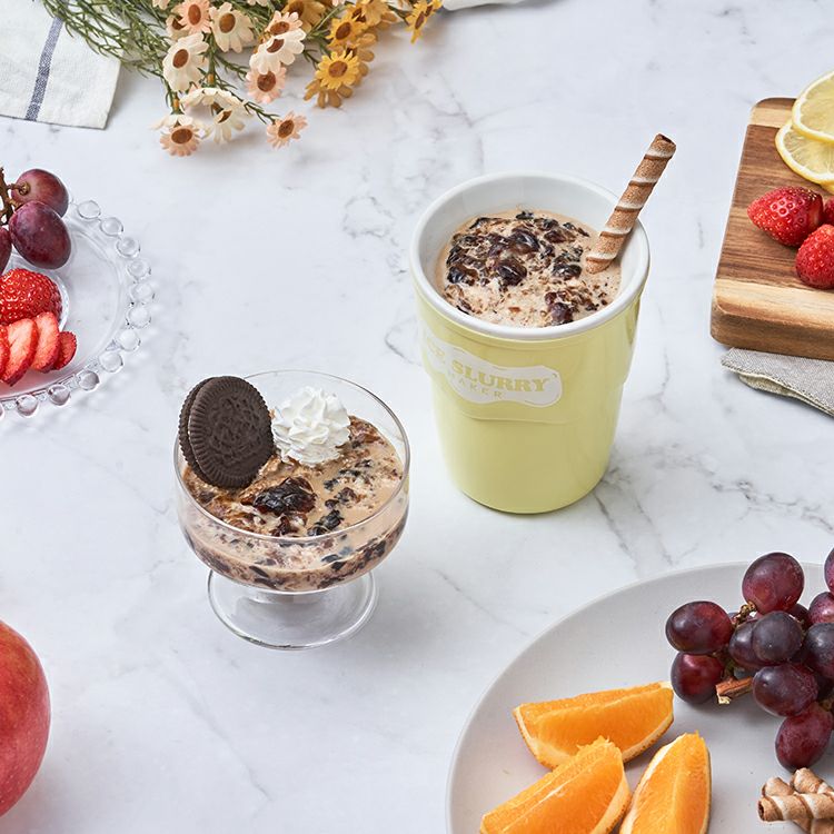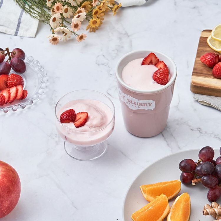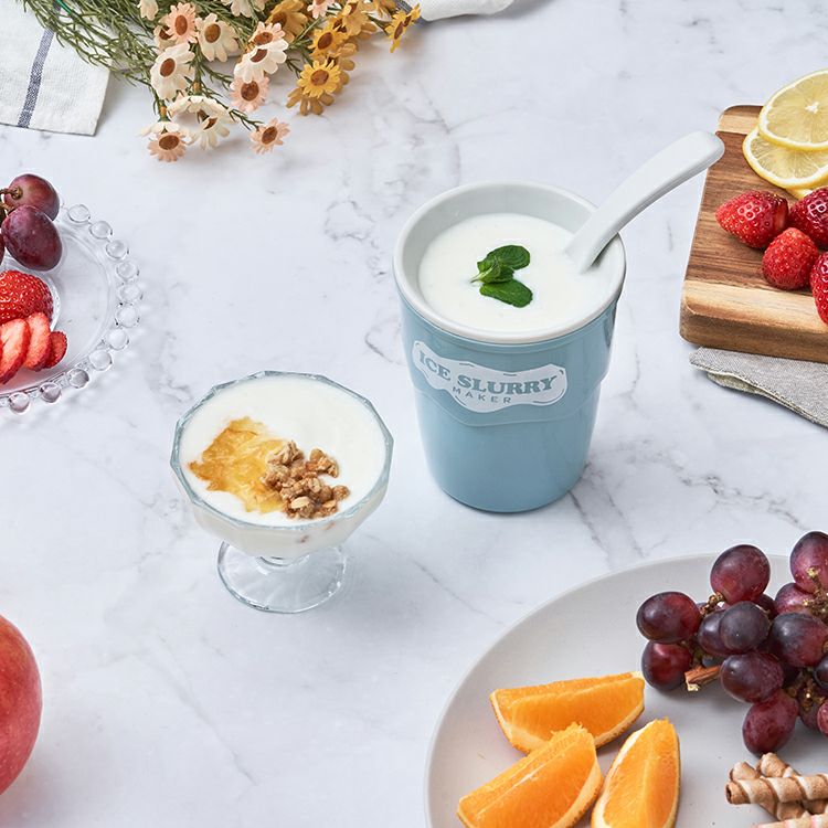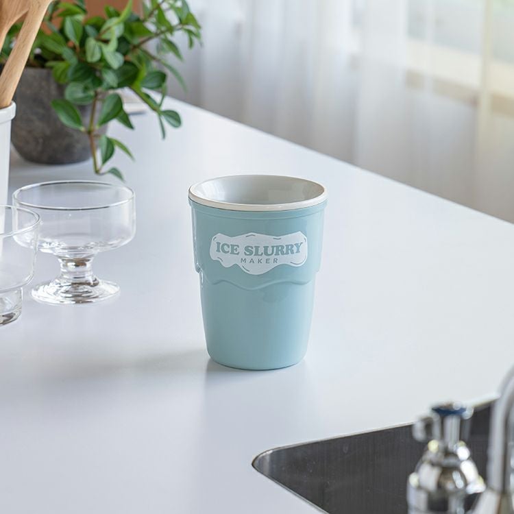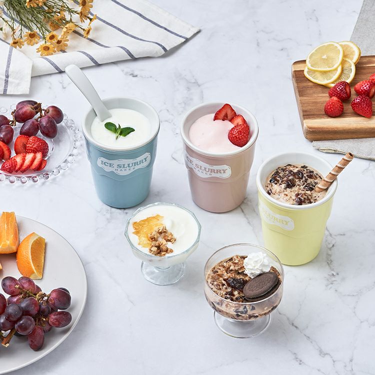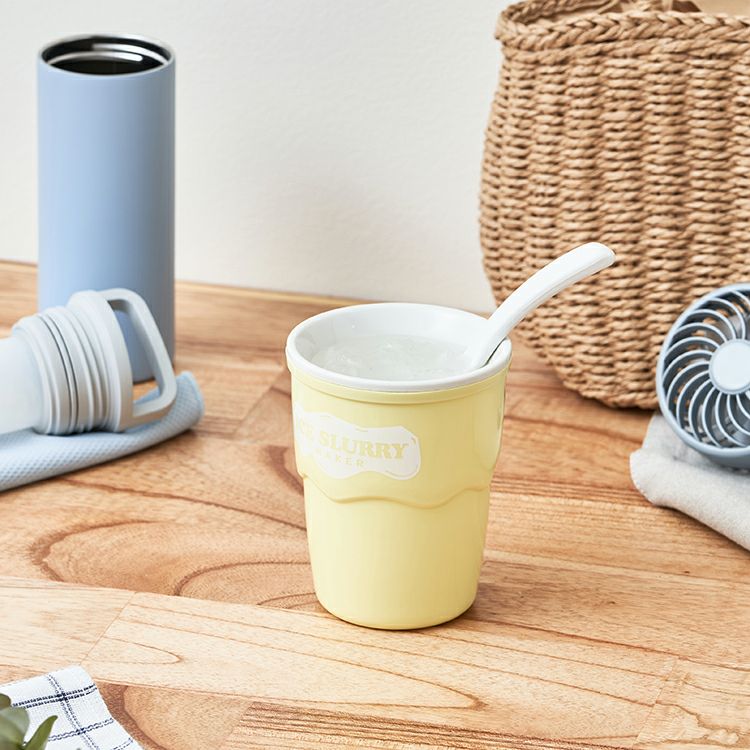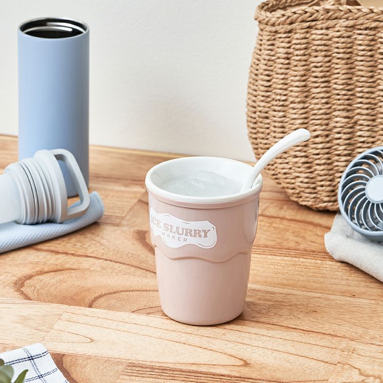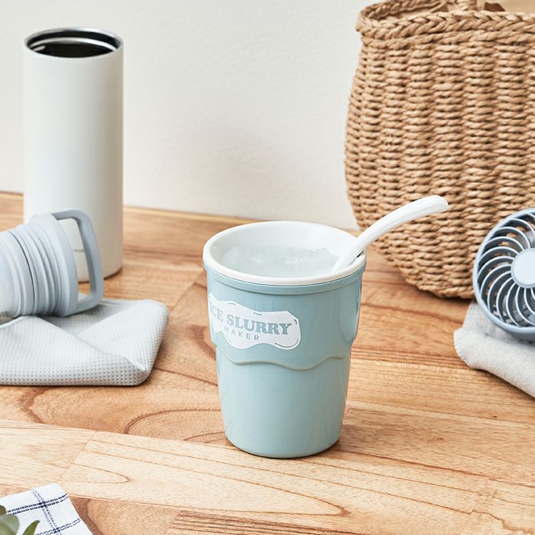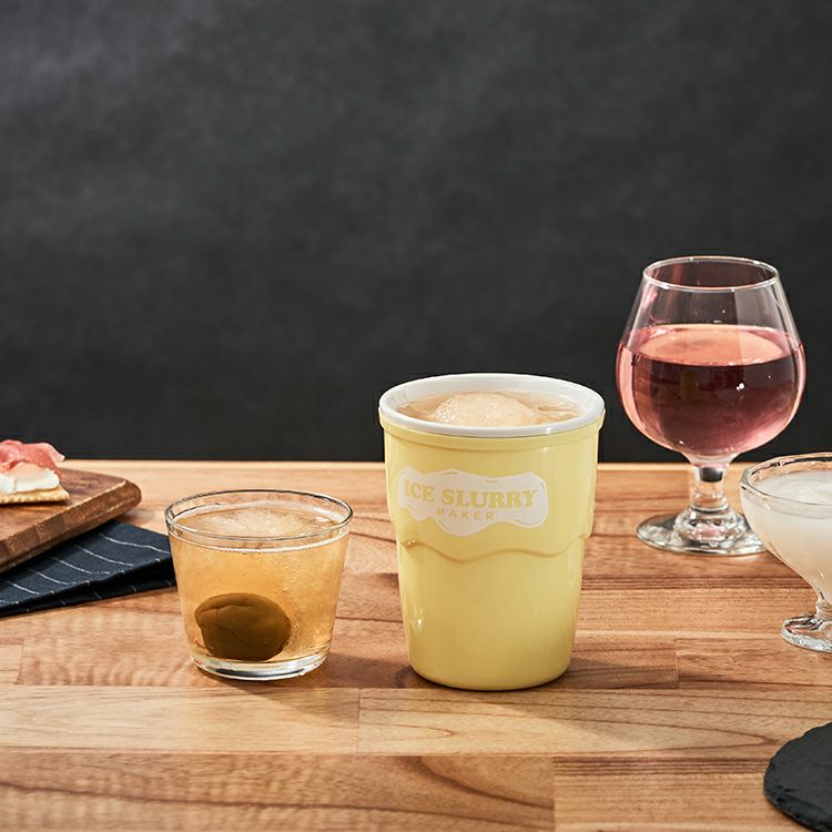お好みのジュースを、凍らせたカップに注いで混ぜるだけで、話題のアイススラリーが簡単に完成!アイススラリーとは細かい氷の粒子が液体に分散した状態で、飲むことで体を内側から効率よく冷やすことができ、子供から大人まで美味しく熱中症対策ができます。スポーツドリンクやフルーツジュースはもちろん、炭酸ドリンクやゼリー、カクテルなども使用可能で、工夫次第で様々なクールスイーツが楽しめます。※ジュースの糖分、乳成分の油分、アルコールの度数によっては、うまく固まらないことがあります。