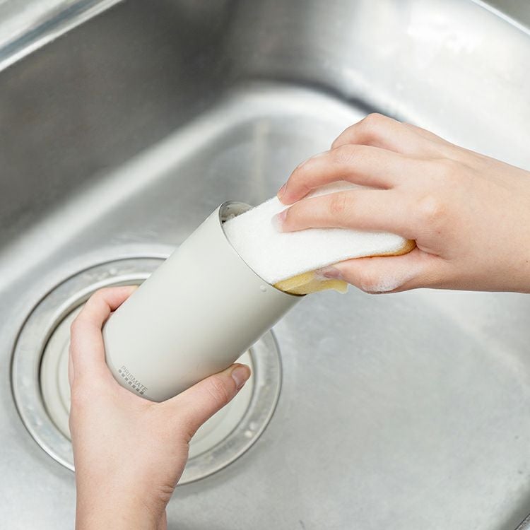 毎日使うものだからこそいつもキレイを保ちたい。上下に分かれる本体は市販のスポンジですみずみまでしっかり洗える形になりました。コーヒー、お茶がそのまま作れる。本体下部はプライベートデスクにもピッタリなサイズでコンビニコーヒーのミニサイズ相当に対応。コーヒーメーカーにそのまま入れてちょっとした休憩中のマイタンブラーに。ボトルとして、タンブラーとして、一日を通してあらゆるシーンで大活躍。