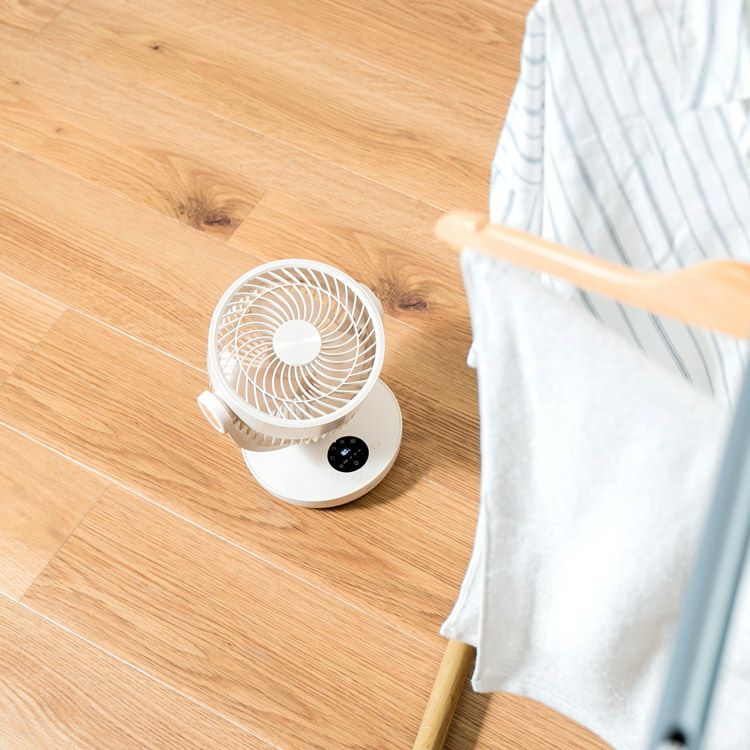 充電式なのでどんな場所にでも持ち運びが可能になりました。コンパクトな使いやすいサイズ感でありながらも、自動首振りやリモコンといった便利な機能を搭載。いつでもどこでも使う場所を選ばず、使用シーンを最大限に広げたサーキュレーターです。