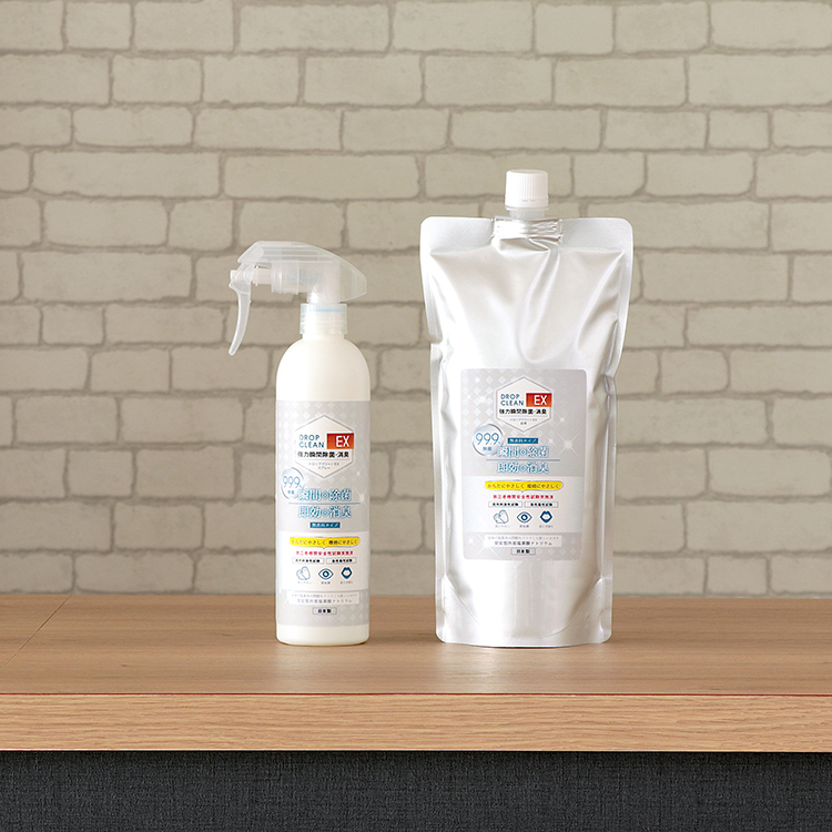 空中に浮遊するウイルスや花粉などにも有効なのでお部屋や玄関などの空間に噴霧していただくことで、快適な空気に変わります。