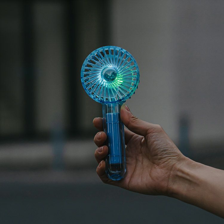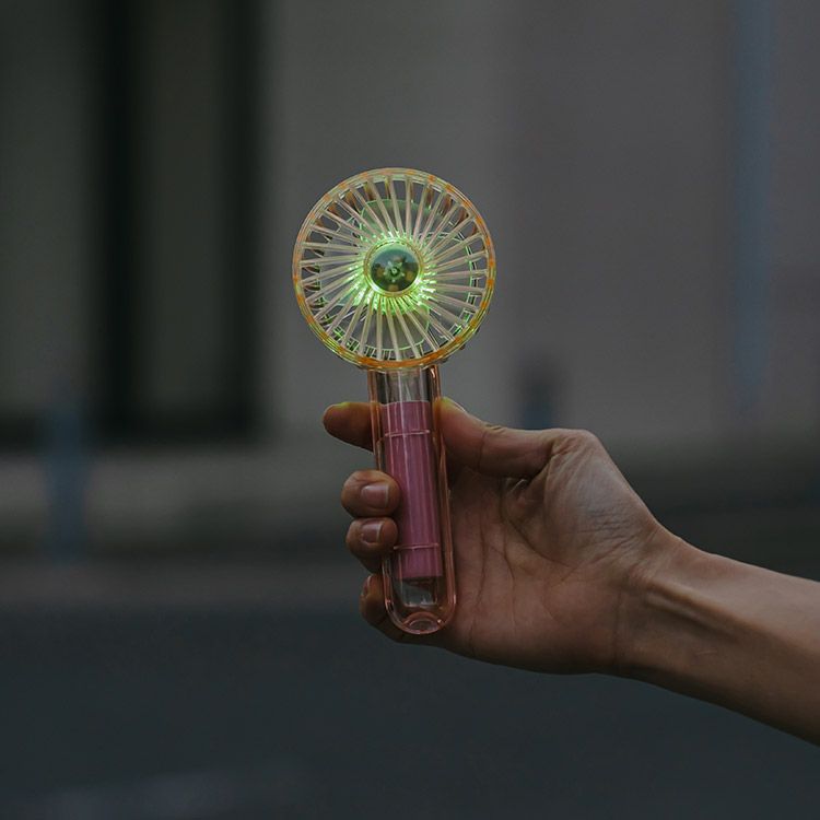 透明感のあるスタイリッシュなデザインで写真映えも◎。7色に光るLEDが魅力のハンディファン