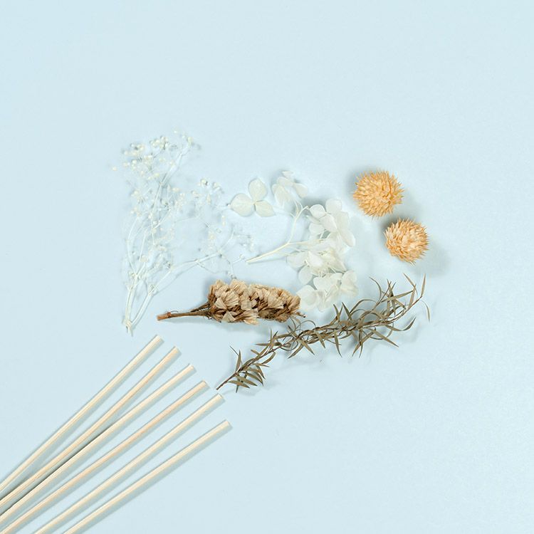 冬の澄んだ空気のように透明感ある白色の花々と、清楚で上品な香りのハーバリウムディフューザー。ナチュラルなウッドリングはどの部屋にも馴染みやすく、おしゃれなインテリアとして、さまざまな場所に飾りたくなる可愛らしさです。