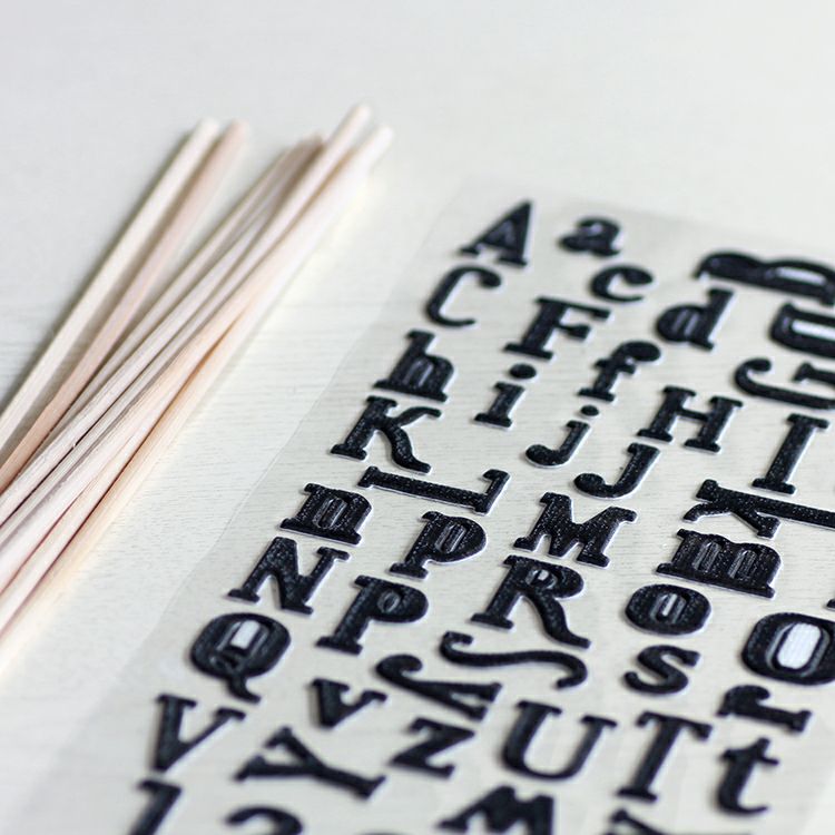 1シートにアルファベット大文字・小文字、数字がミックスされています。さりげなくキラキラと輝くグリッターブラック。