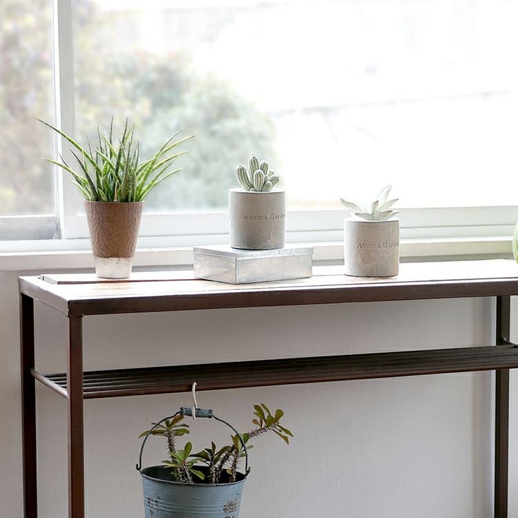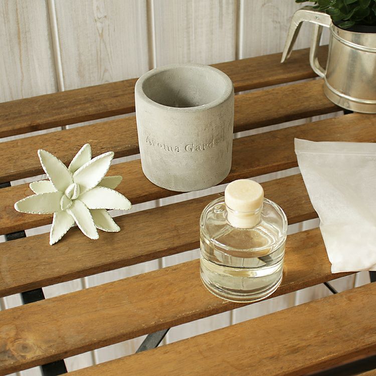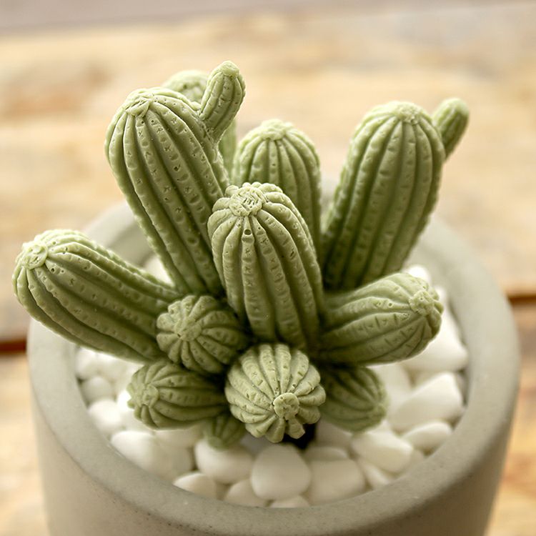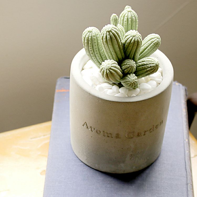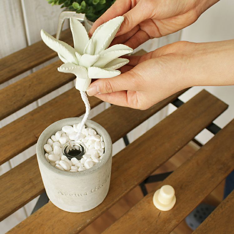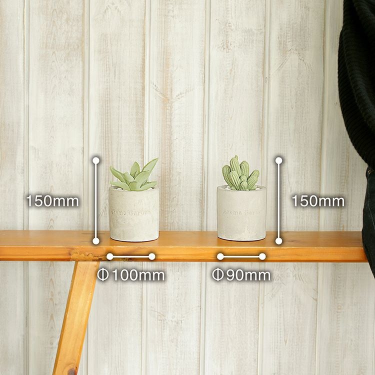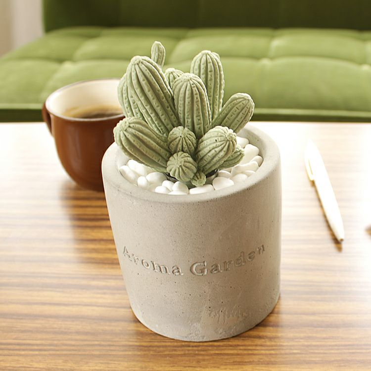 無機質なセメントのカップに入った、まるで本物のようなかわいい2種類のサボテンからは、それぞれ華やかないい香りが。白い小石を敷き詰めてあるところも本物らしく見えるポイントです。