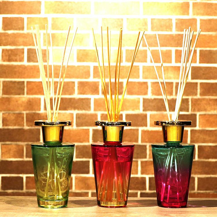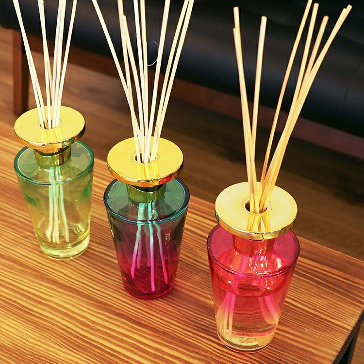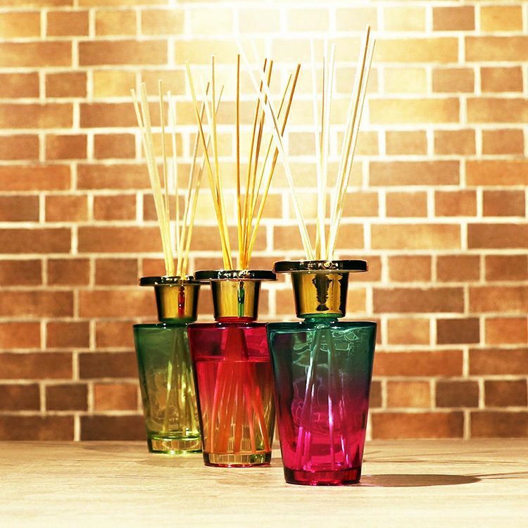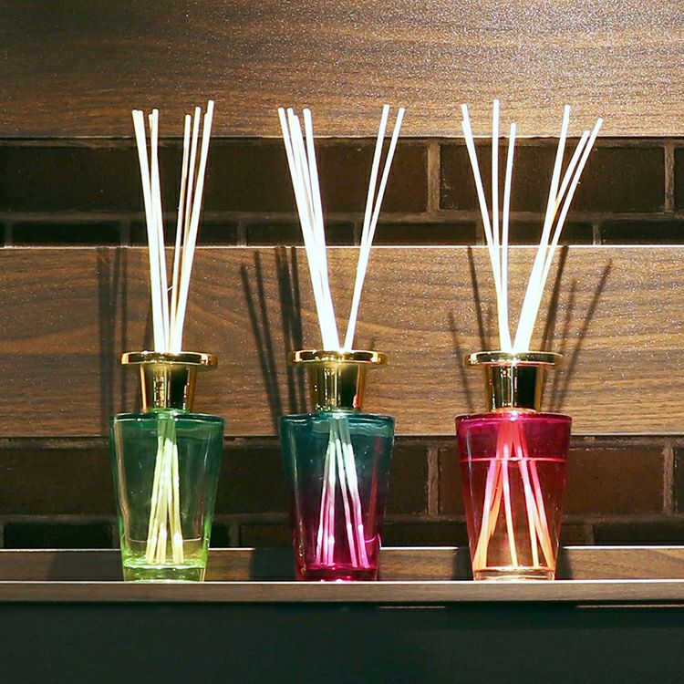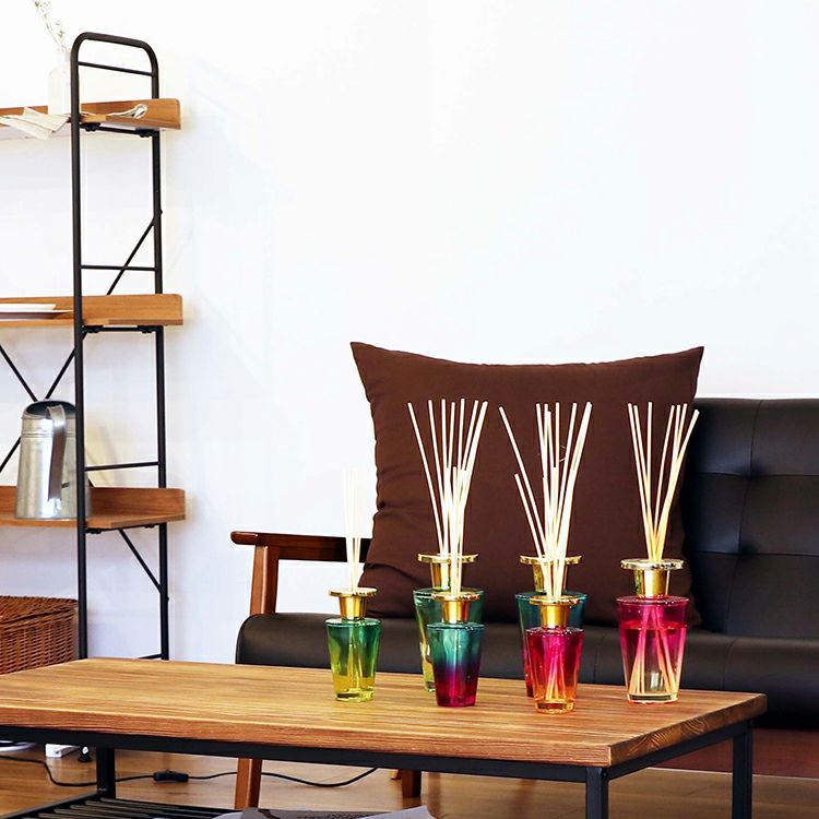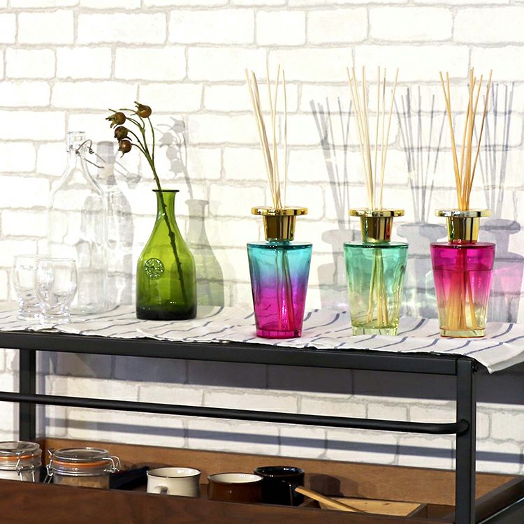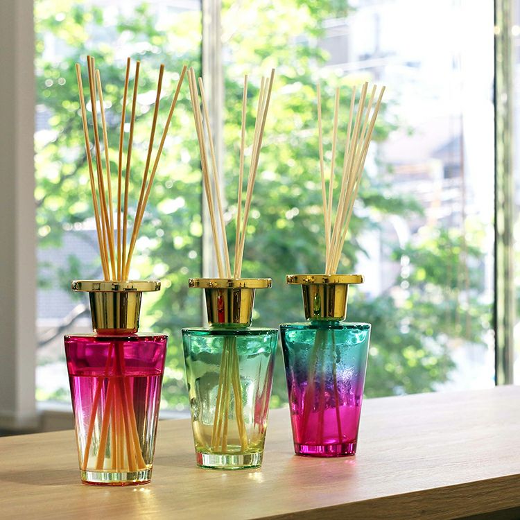 カラーはブルー、グリーン、ピンクの3種類。鮮やかなグラデーションカラーのボトルから香るアロマの癒しの空間をお届けします。