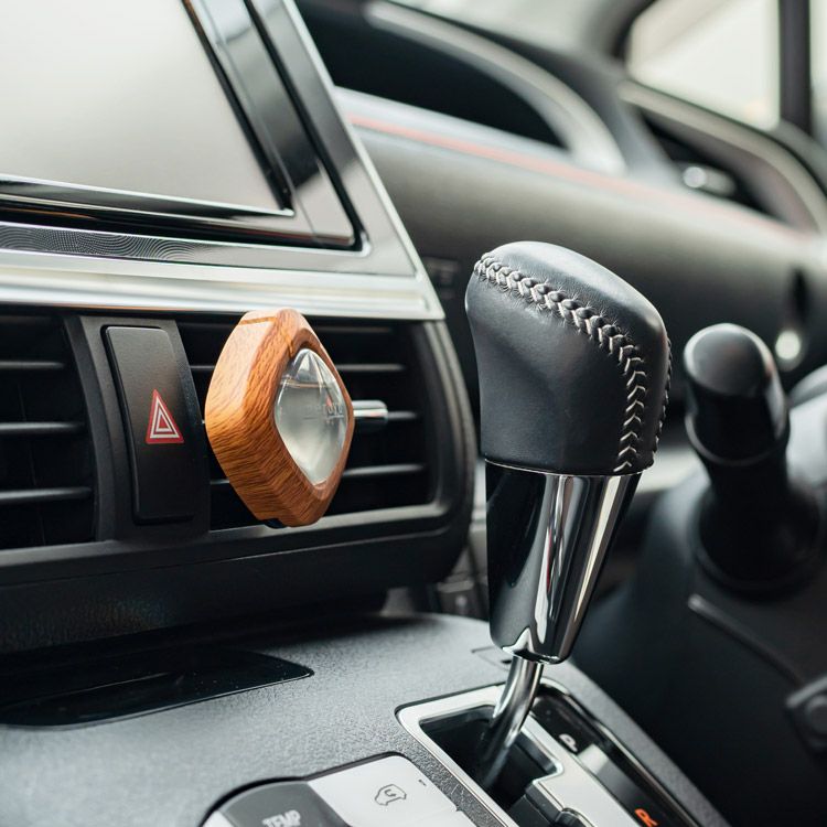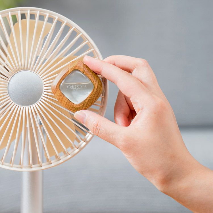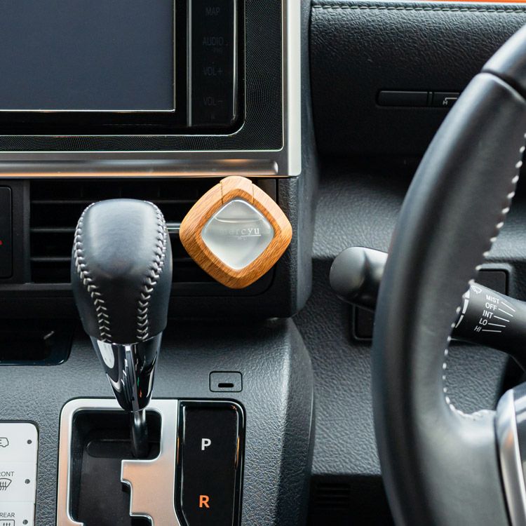ファンやサーキュレーターだけでなく、車の中でも使っていただけます。車内のエアコン送風口に取り付けると、エアコンの風に乗ってアロマの香りが車内を包みます。