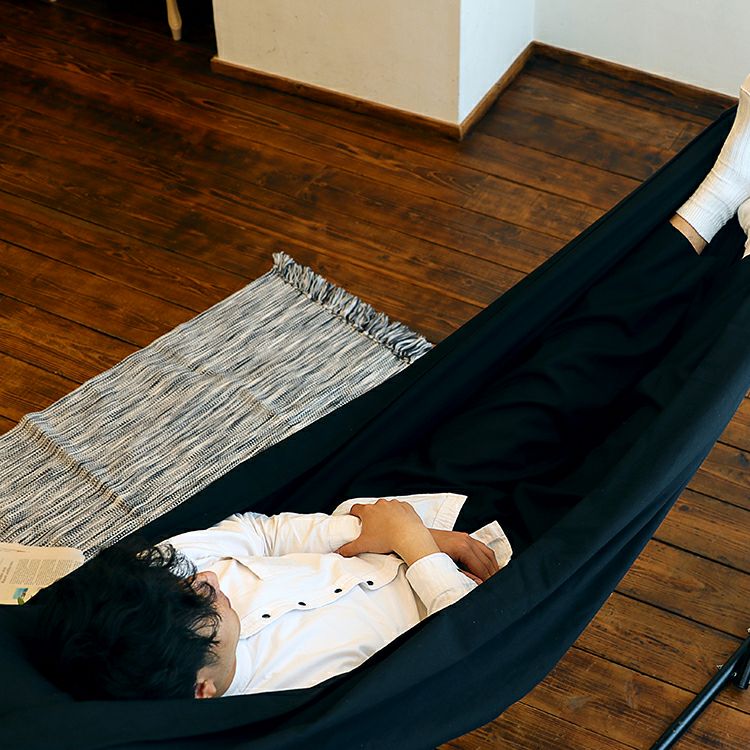 ハンモック、チェア、ハンガーラックとしての3WAYの使い方ができるSifflusのハンモックスタンドが単品で登場。ハンガーロッドがセットになっています。コンパクトに収納できる折りたたみ式のハンモックスタンドなので、収納バッグも付属。いつでもどこでも、ハンモックライフを楽しめる強い味方です。どんな生地にも合う重厚感のあるツヤが特徴的な黒いスタンドを採用しています。