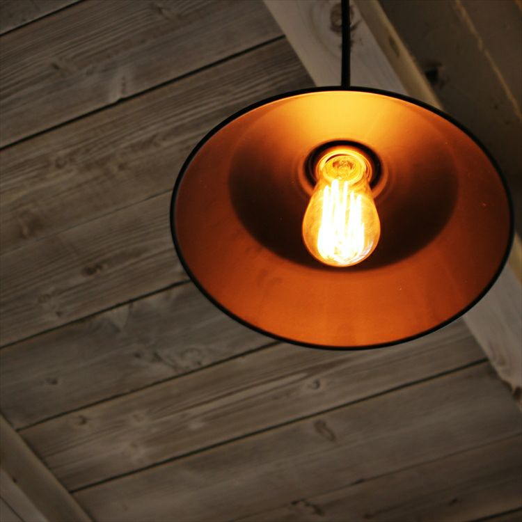 オレンジ色に光るエジソン電球と渋いシェードがその場を優しく包み込みます。どこか懐かしくて優しい光に包まれて贅沢なひと時をお楽しみください。
