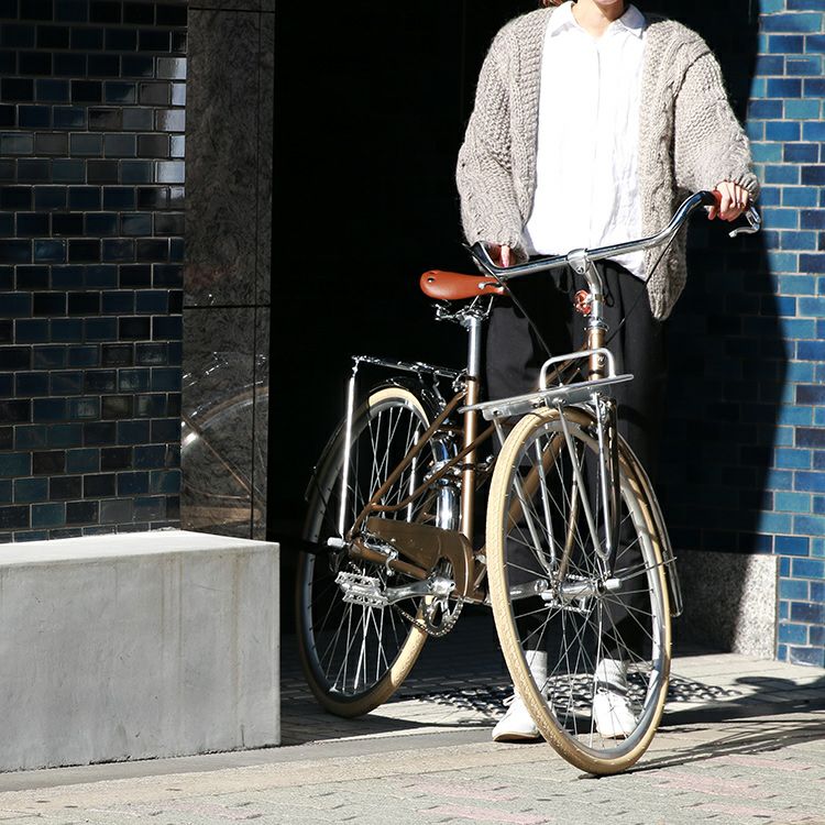 自転車のフレームの中で長い歴史をもつラグフレームを取り入れたクラシカルなシティバイク。いつも通る道もお気に入りの1台と一緒に通れば、少し違った景色が見えてくる。いつもの景色にプラスされる新たな発見や彩りを、このシティバイクとともにお楽しみください。それは、毎日が素敵な発見で溢れる旅になるために。
