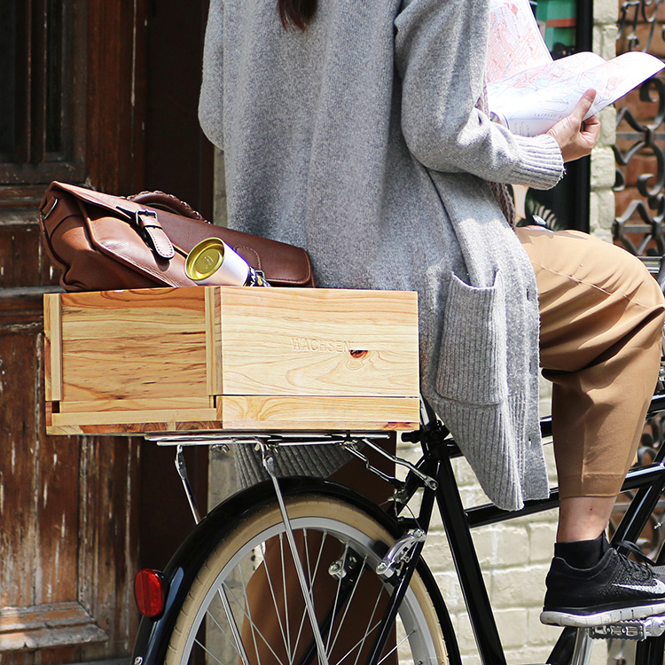 リュックやショルダーバッグが入る大きさの木カゴは日常の街乗りをより快適にしてくれます。