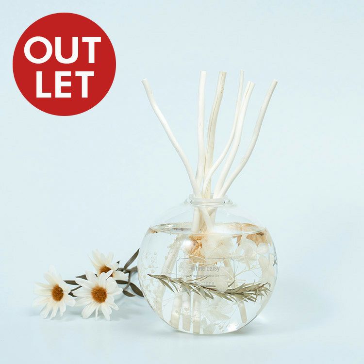 丸いボトルが可愛らしい印象を与え、どの角度からでもお花の美しさを楽しめるハーバリウムディフューザーです。純白のリードが目に鮮やか。冬を感じる透き通った花々と上品な優しい香りが魅力的です。