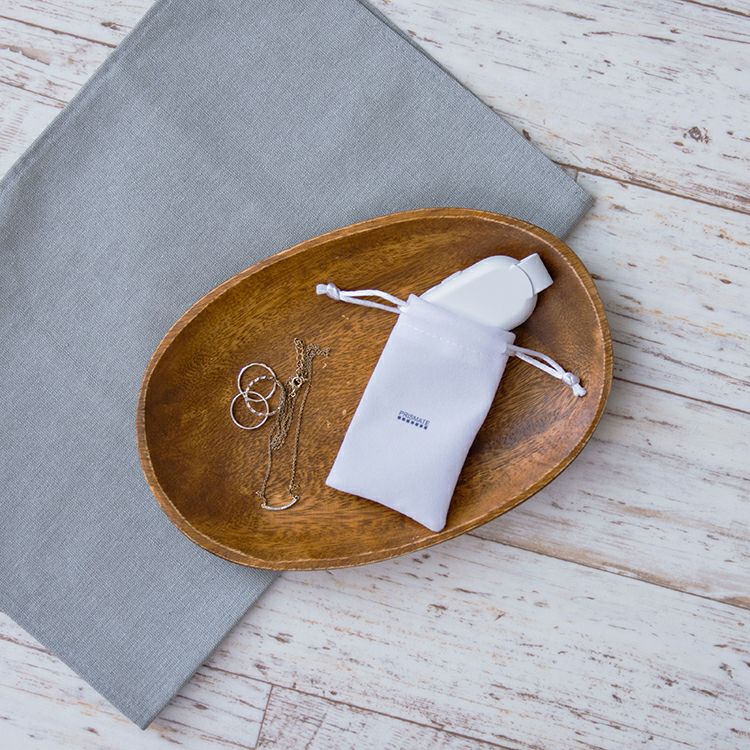 シンプルなデザインの小さな専用ポーチが付属。持ち歩く時にも安心です。