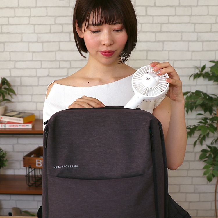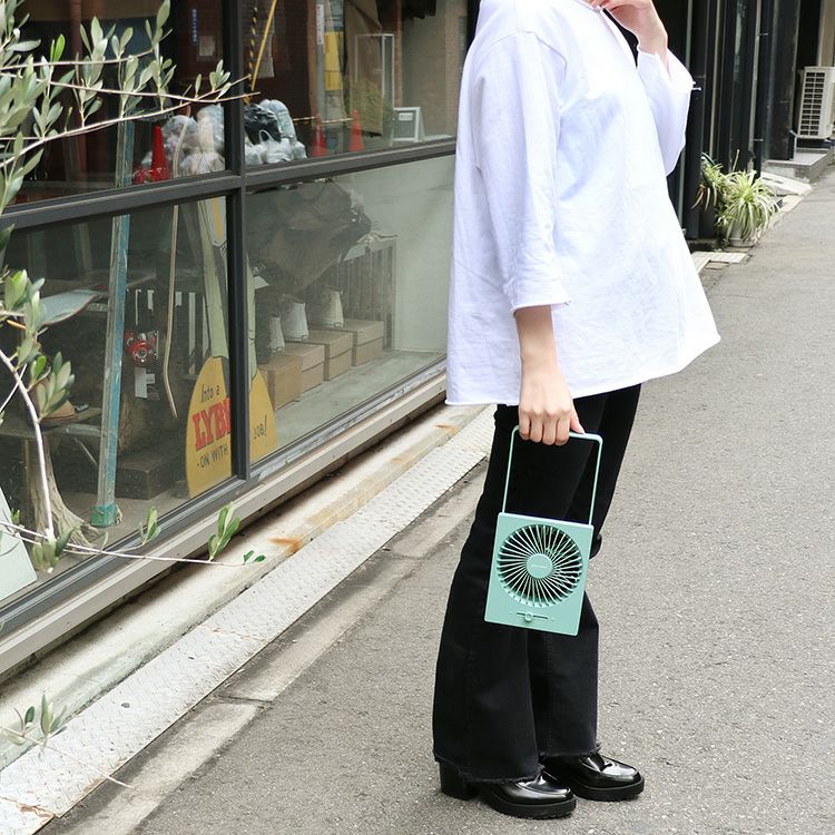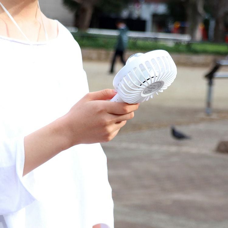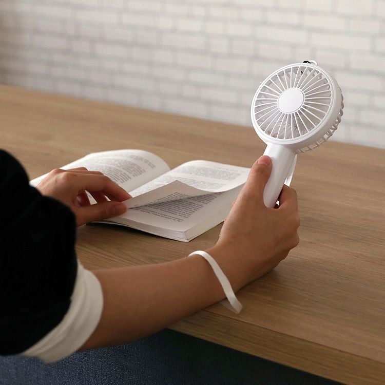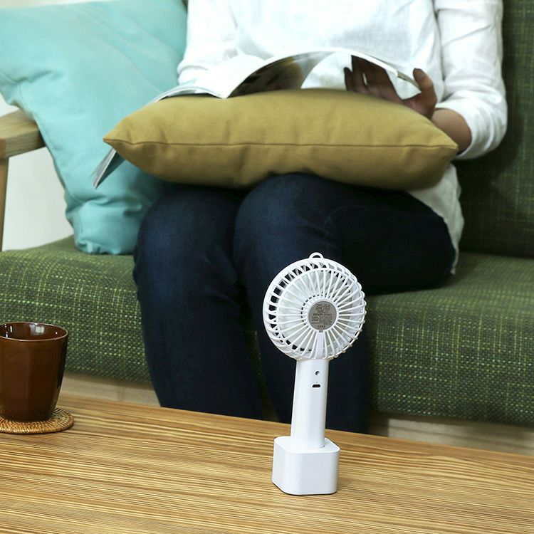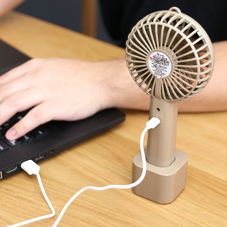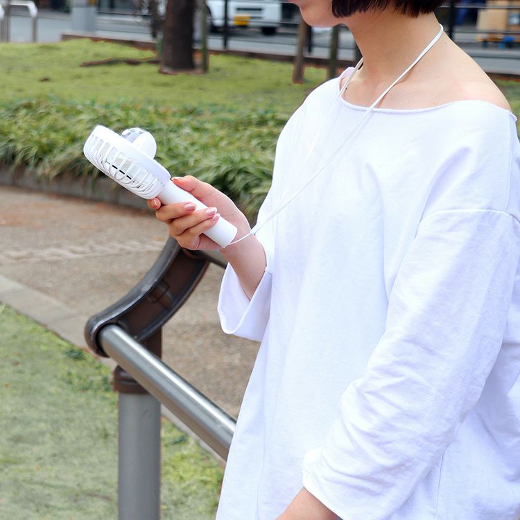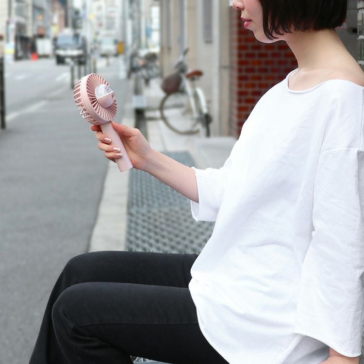 MO-F021 plusmore(プラスモア) 充電式ミニハンディファン スタンド&ネックストラップ付