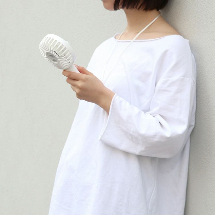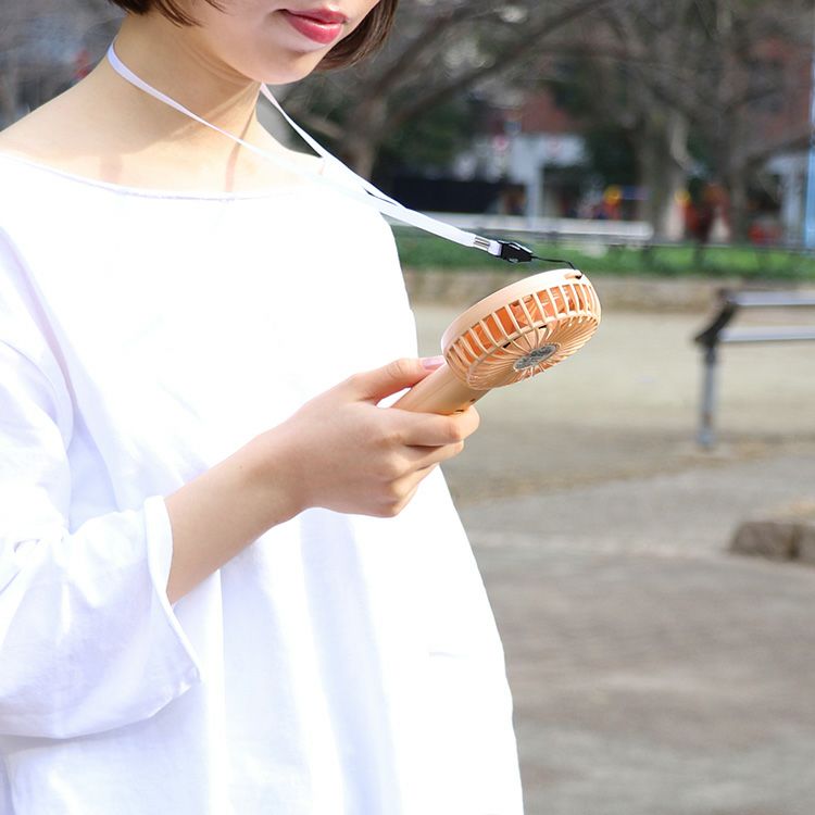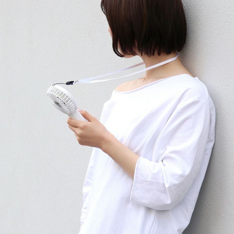 PBAF001 plusmore(プラスモア) 静音ミニハンディファン ネックストラップ&スタンド付