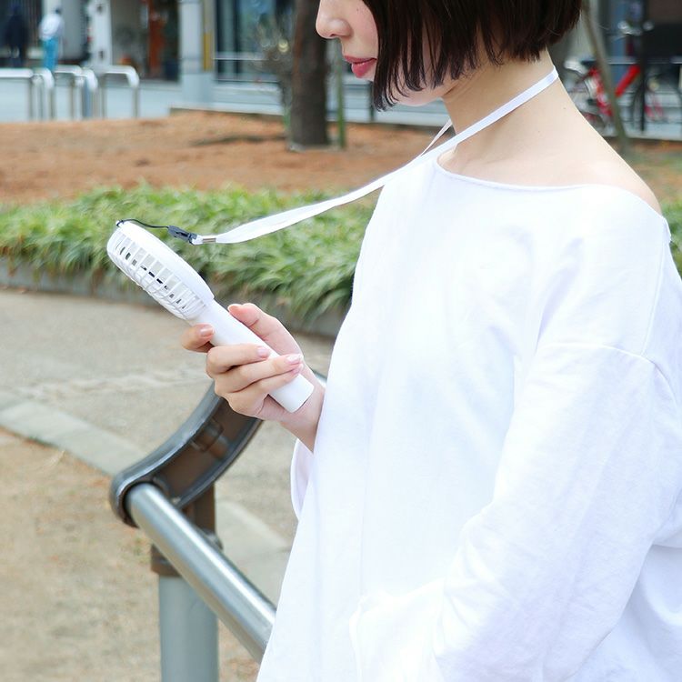 MO-F014 plusmore(プラスモア) 充電式ハンディミストファン ネックストラップ付
