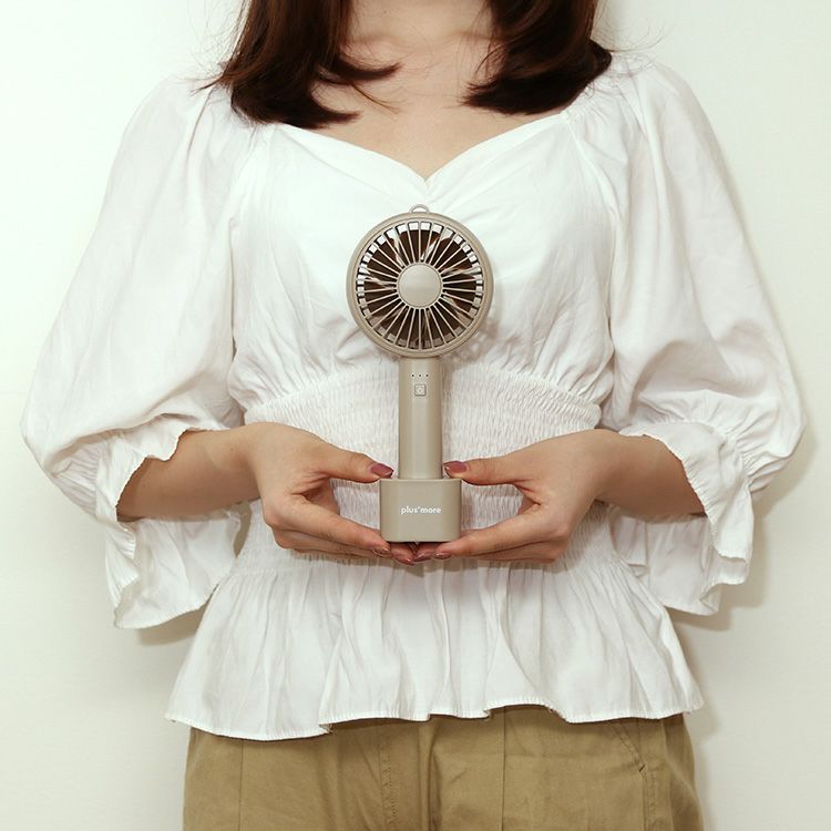 MO-F009 plusmore(プラスモア) 充電式ハンディファン スタンド&ネックストラップ付