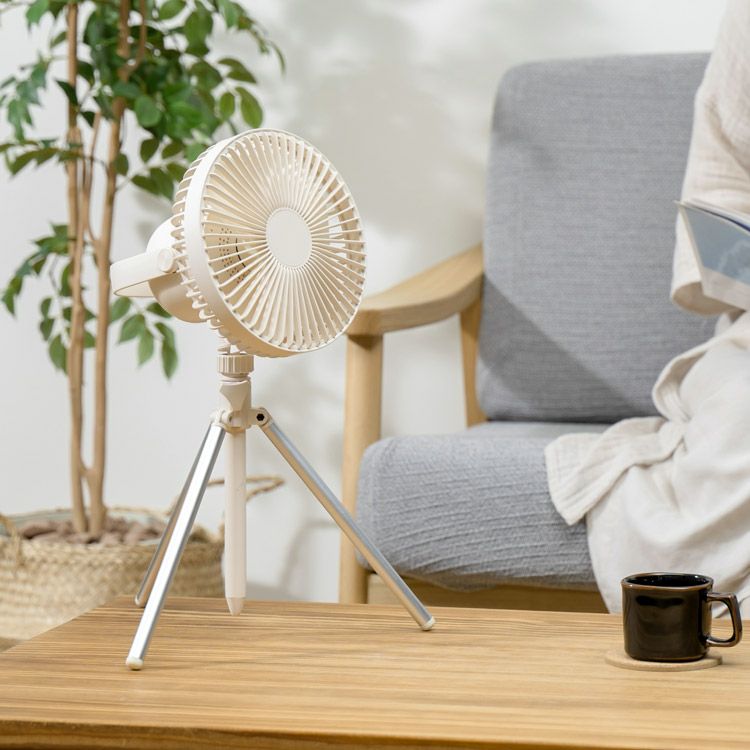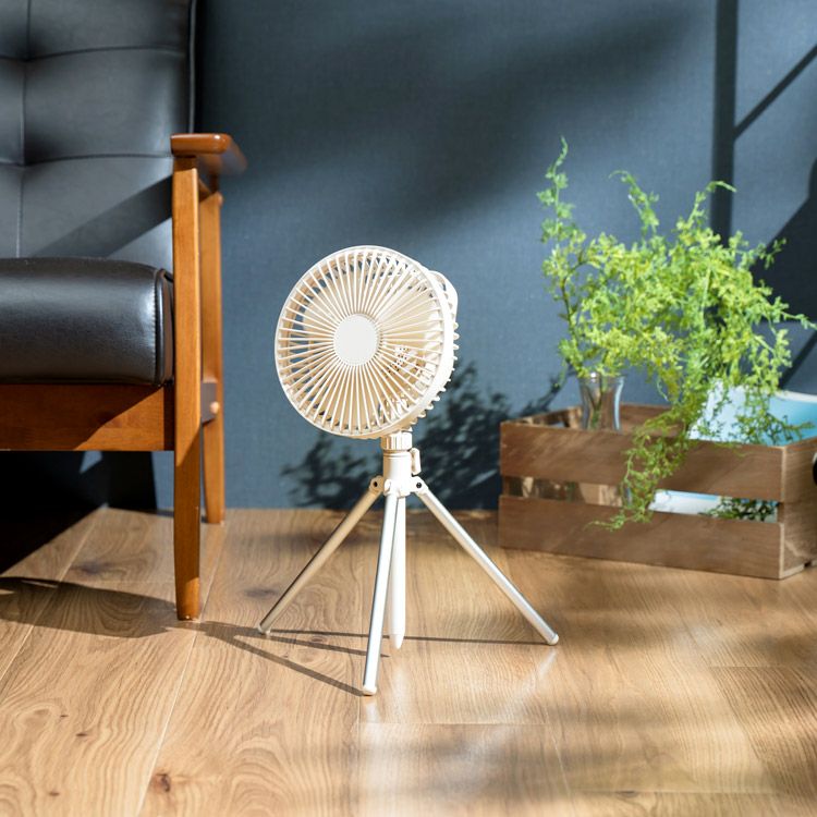 MO-F017 plusmore(プラスモア) コードレス3脚ファン 首振り& モバイルバッテリー機能付