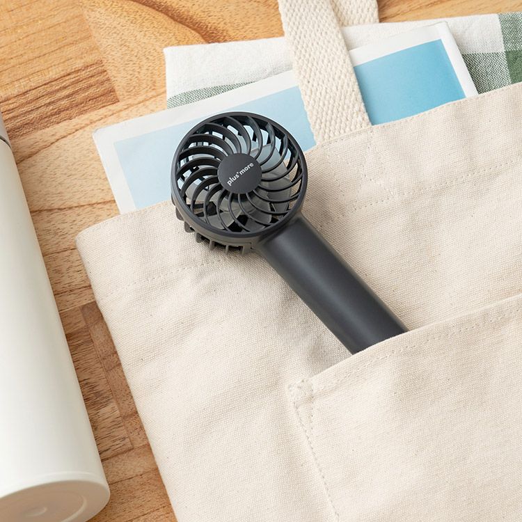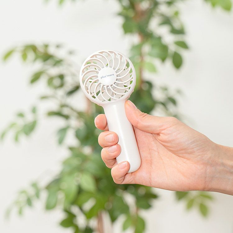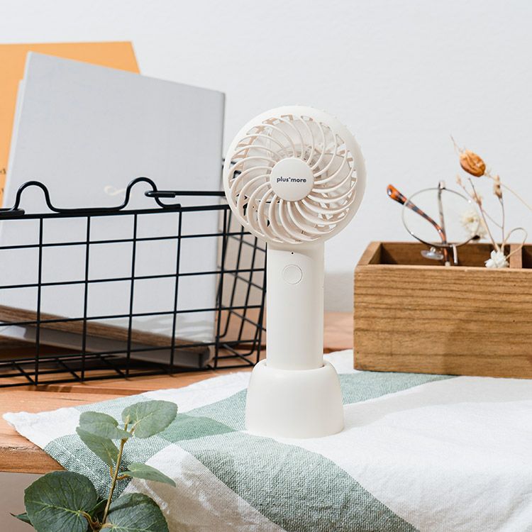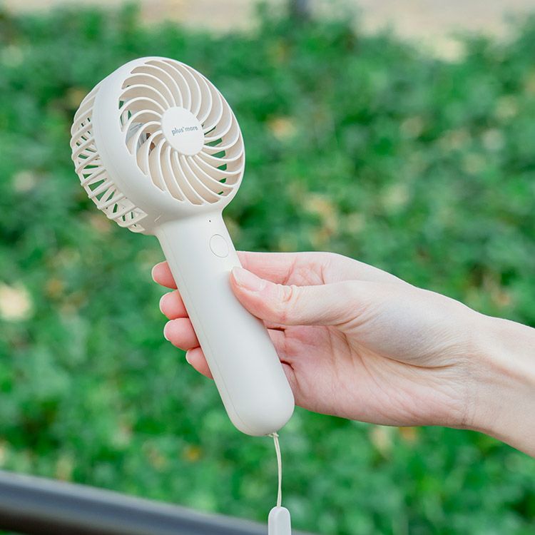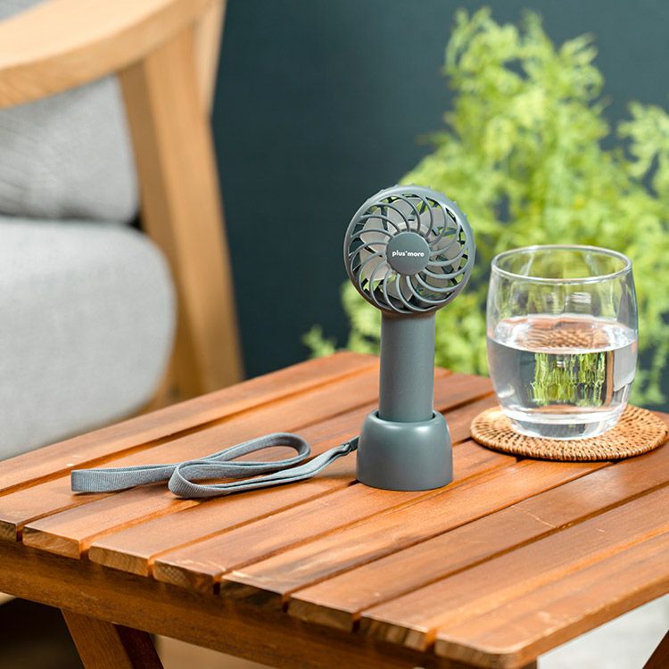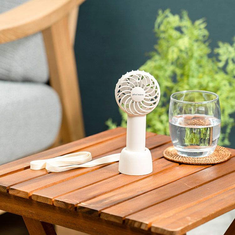 MO-F021 plusmore(プラスモア) 充電式ミニハンディファン スタンド&ネックストラップ付