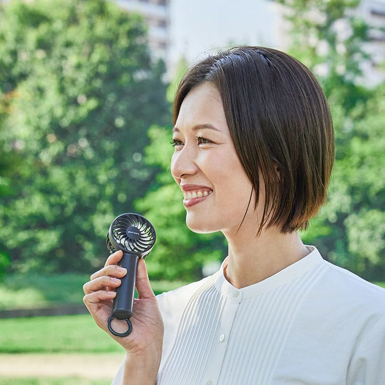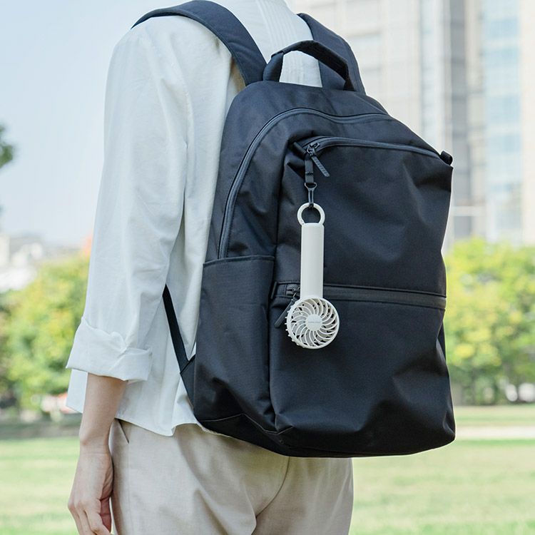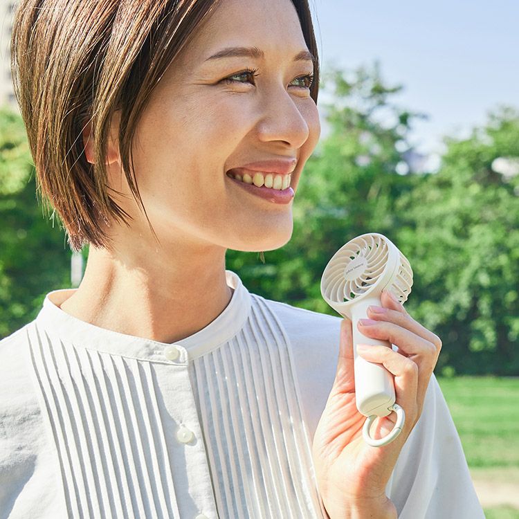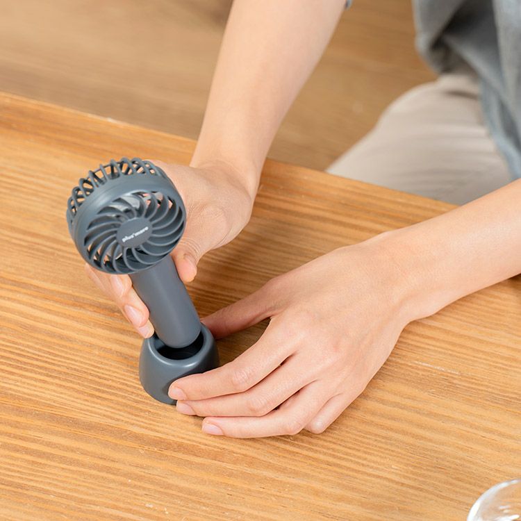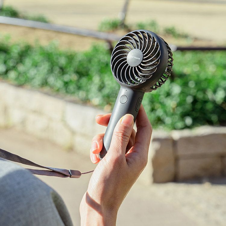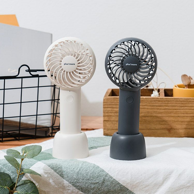 MO-F021 plusmore(プラスモア) 充電式ミニハンディファン スタンド&ネックストラップ付
