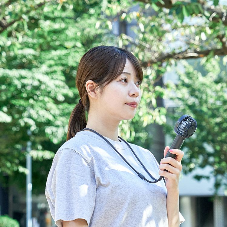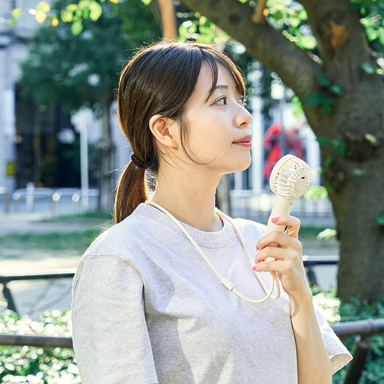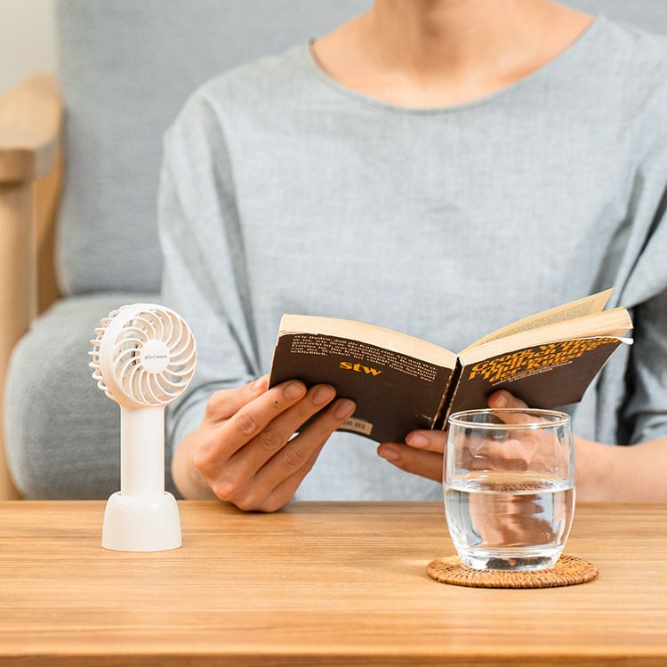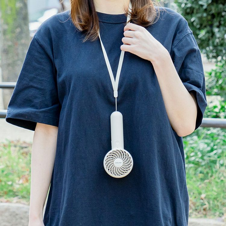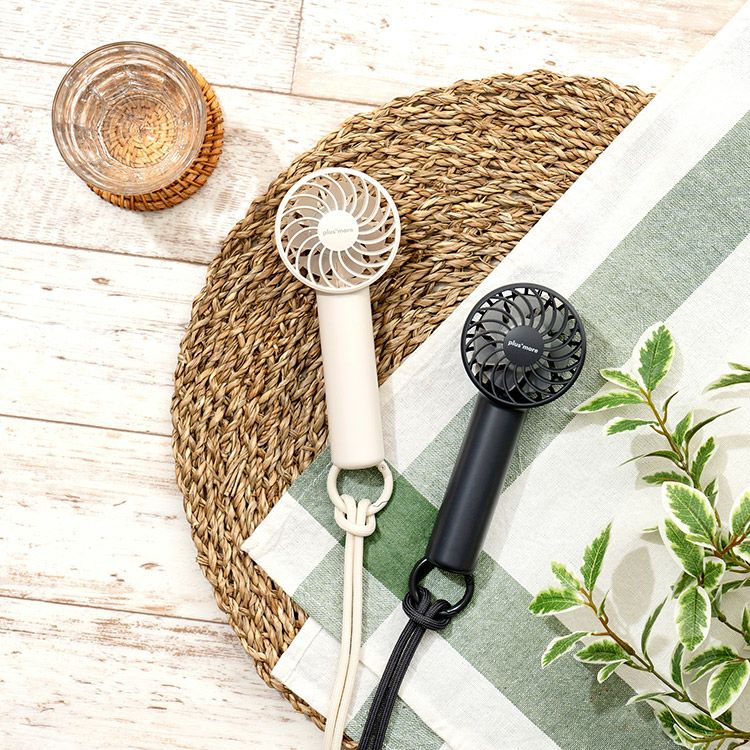 PBAF001 plusmore(プラスモア) 静音ミニハンディファン ネックストラップ&スタンド付